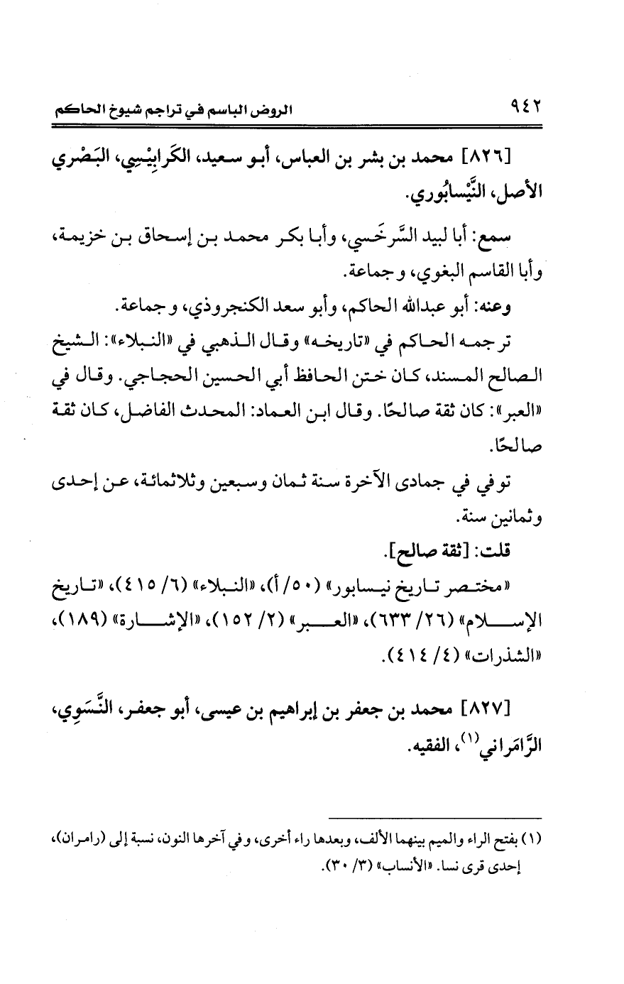 [826] محمَّد بن بشر بن العباس، أبو سعيد، الكَرابِيْسِي، البَصْري الأصل، النَّيْسابُوري.
