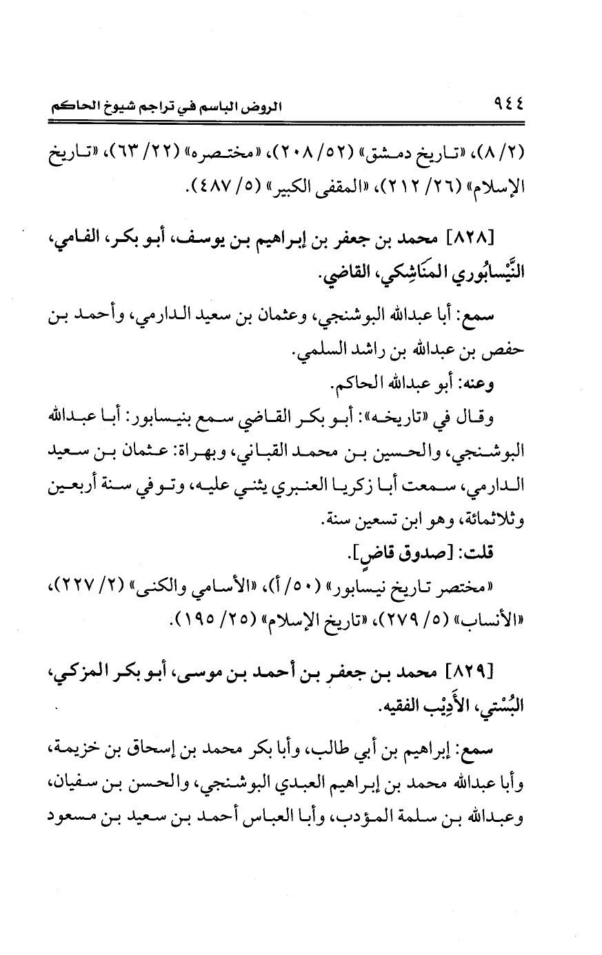 [828] محمَّد بن جعفر بن إبراهيم بن يوسف، أبو بكر، الفامي، النَّيْسابُوري المَنَاشِكي، القاضي.