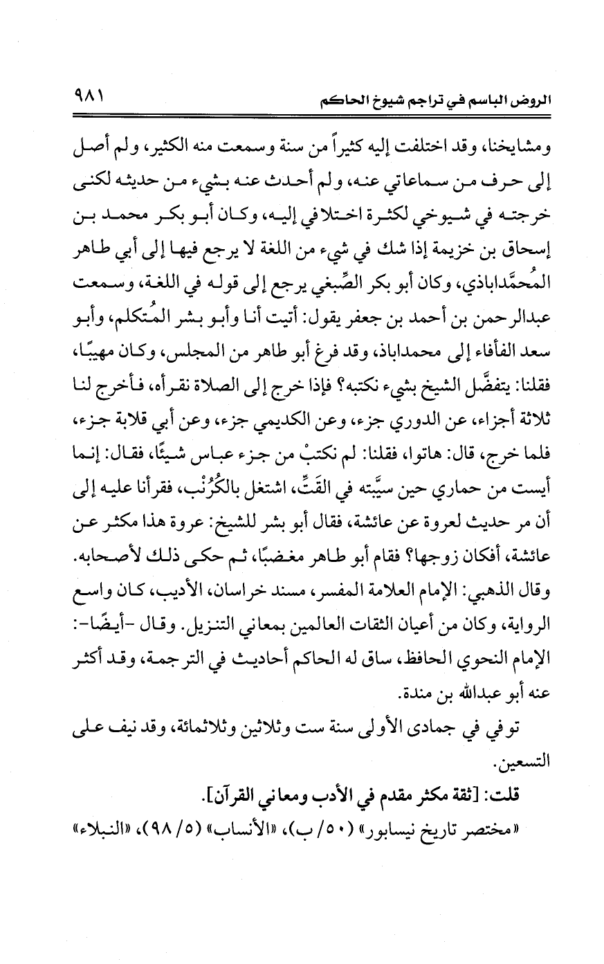 كتاب الروض الباسم في تراجم شيوخ الحاكم (اسم الجزء: 2)