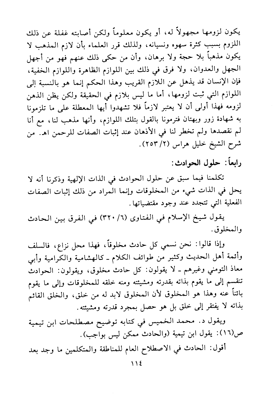 ويقول د. محمد الخميس في كتابه توضيح مصطلحات ابن تيمية ص 16: يقول ابن تيمية (والحادث ممكن ليس بواجب)