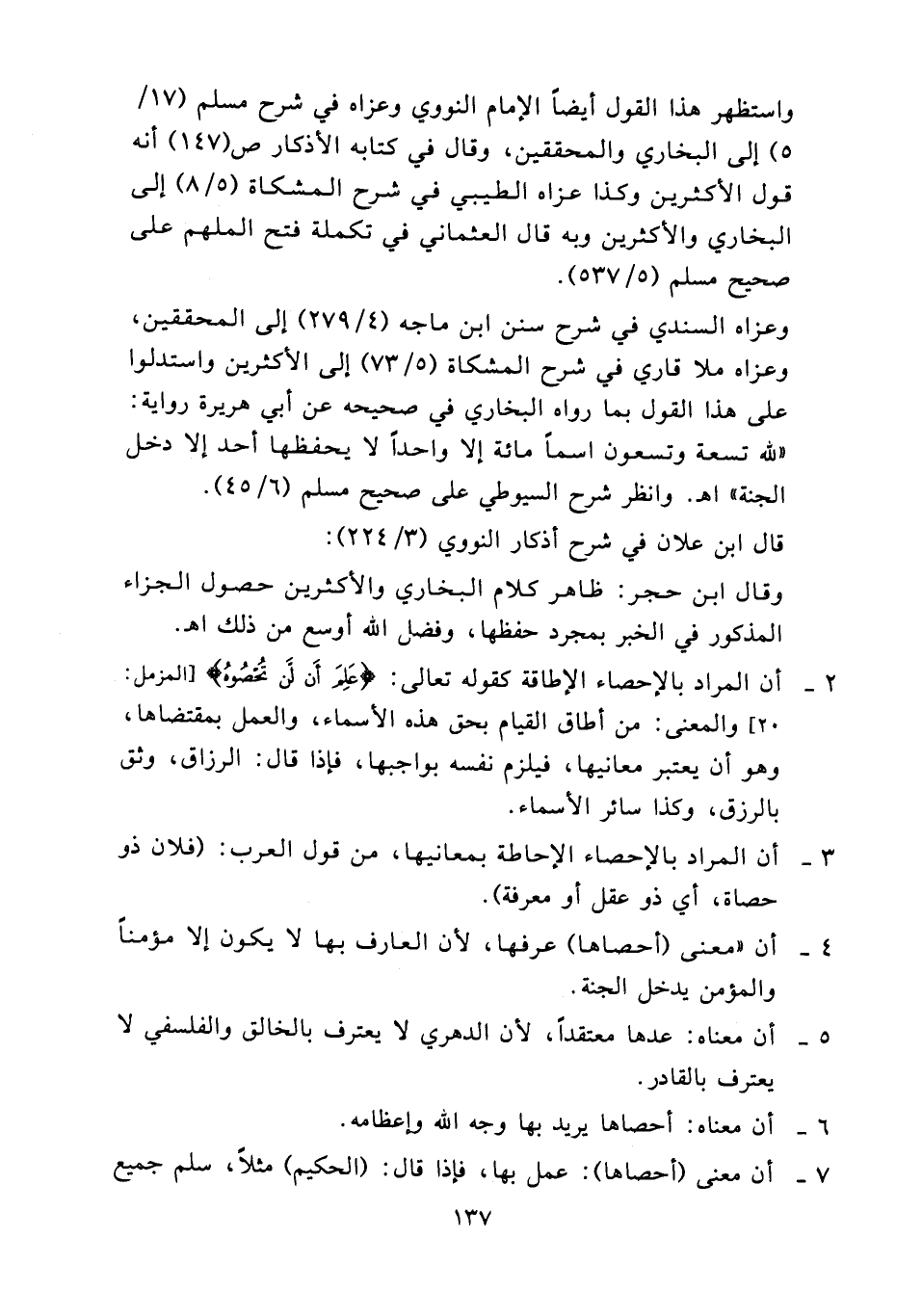 7 - أن " معنى (أحصاها) عمل بها، فإذا قال: (الحكيم) مثلاً، سلم جميع