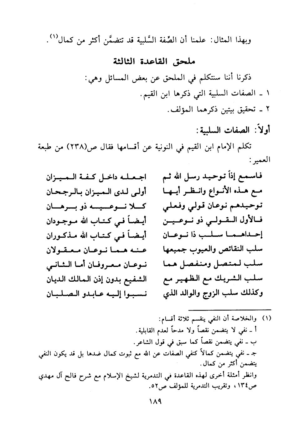 1 - الصفات السلبية التي ذكرها ابن القيم.