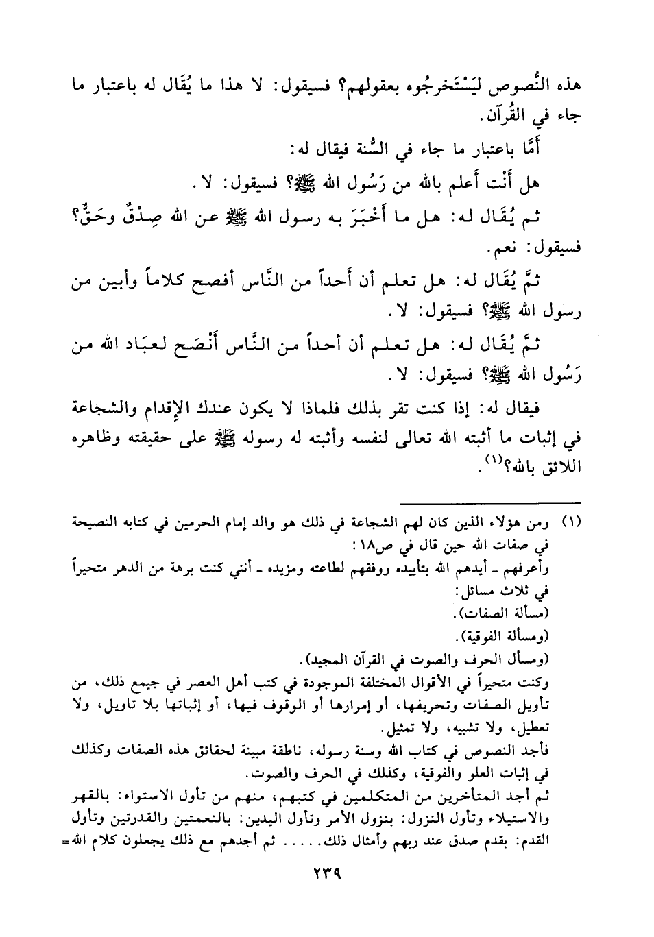 (¬1) ومن هؤلاء الذين كان لهم الشجاعة في ذلك هو والد إمام الحرمين في كتابه النصيحة في صفات الله حين قال في ص18: