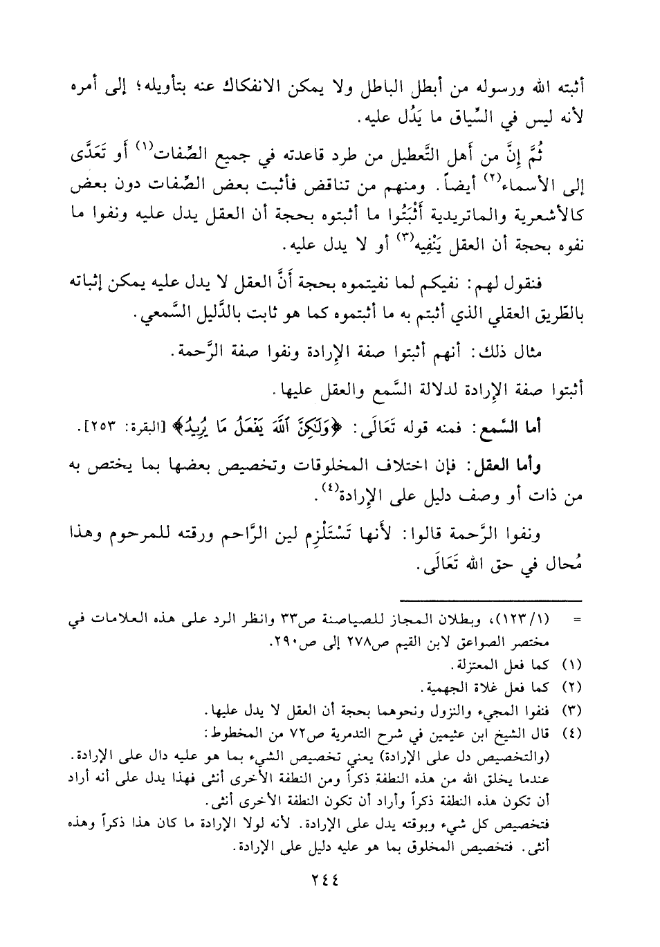 (¬4) قال الشيخ ابن عثيمين في شرح التدمرية ص72 من المخطوط: