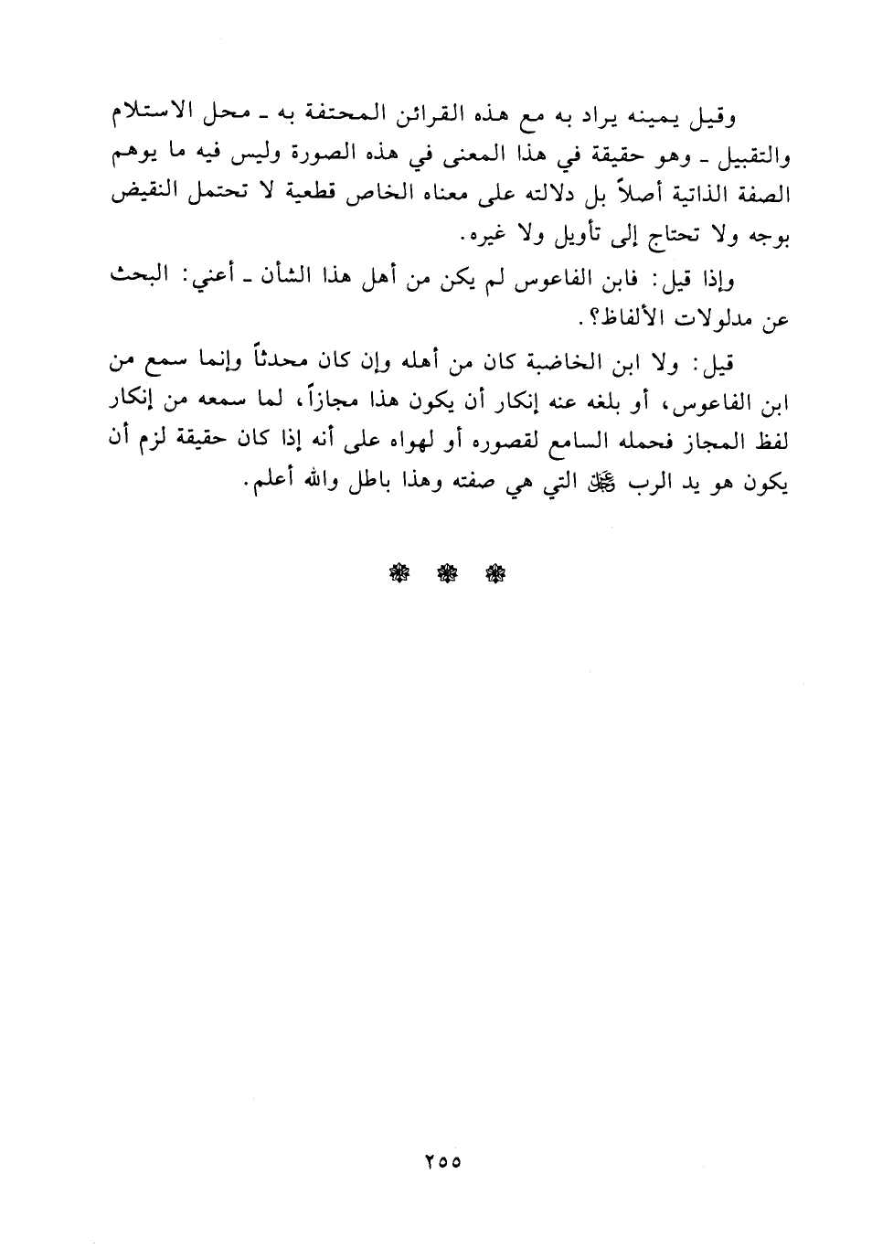 وهو حقيقة في هذا المعنى في هذه الصورة وليس فيه ما يوهم الصفة الذاتية أصلاً بل دلالته على معناه الخاص قطعية لا تحتمل النقيض بوجه ولا تحتاج إلى تأويل ولا غيره.