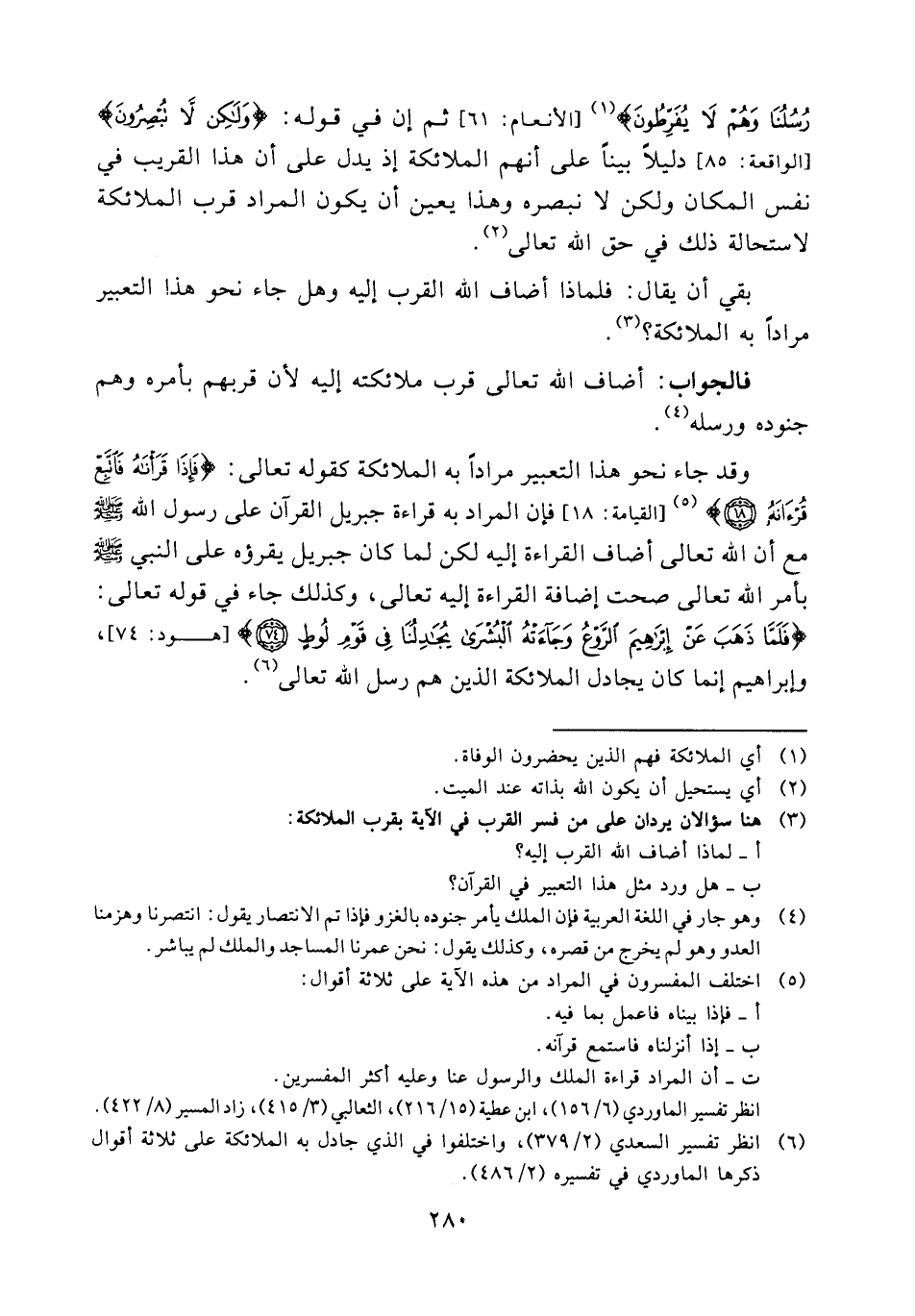 (¬3) . هنا سؤالان يردان على من فسر القرب في الآية بقرب الملائكة: