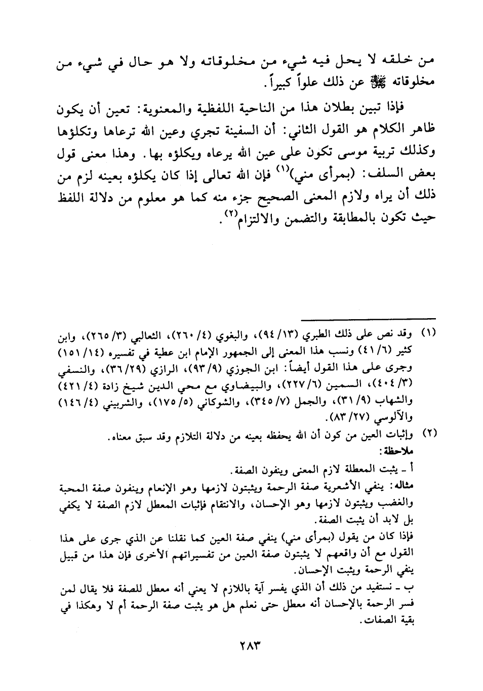 ب - نستفيد من ذلك أن الذي يفسر آية باللازم لا يعني أنه معطل للصفة فلا يقال لمن فسر الرحمة بالإحسان أنه معطل حتى نعلم هل هو يثبت صفة الرحمة أم لا وهكذا في بقية الصفات