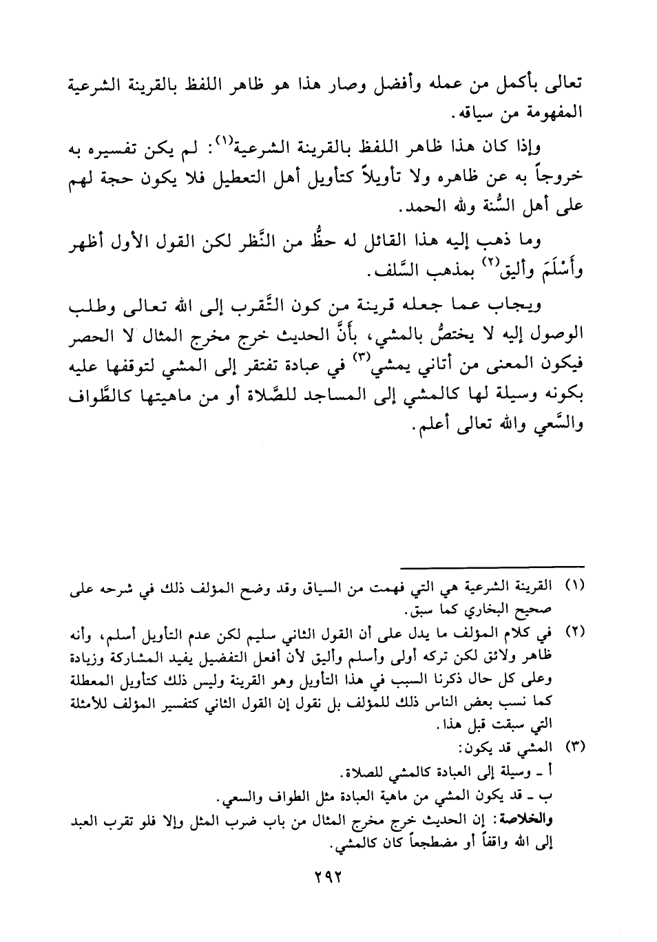(¬1) القرينة الشرعية هي التي فهمت من السياق وقد وضح المؤلف ذلك في شرحه على صحيح البخاري كما سبق.
