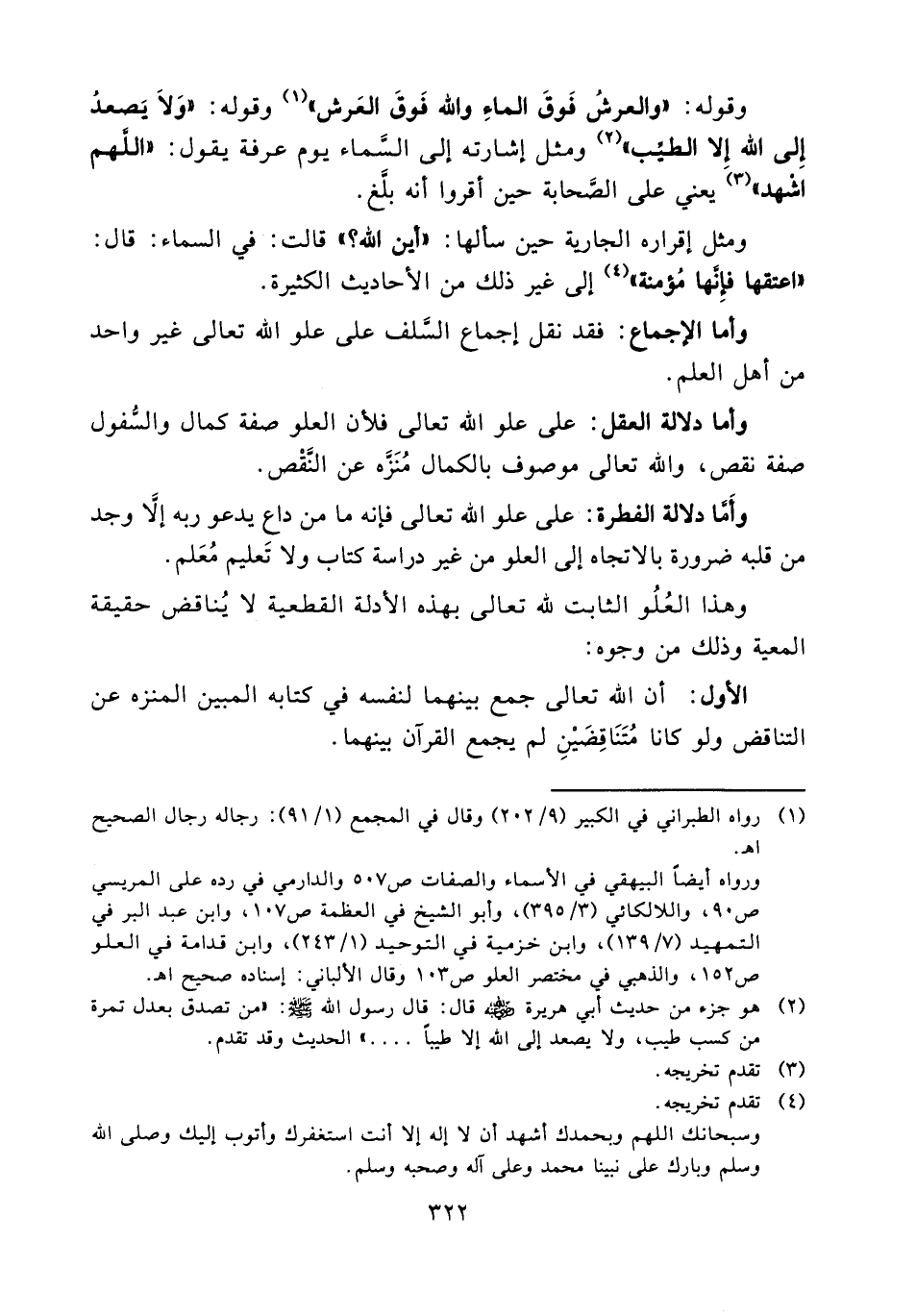**وأما الإجماع: فقد نقل إجماع السلف على علو الله تعالى غير واحد من أهل العلم.