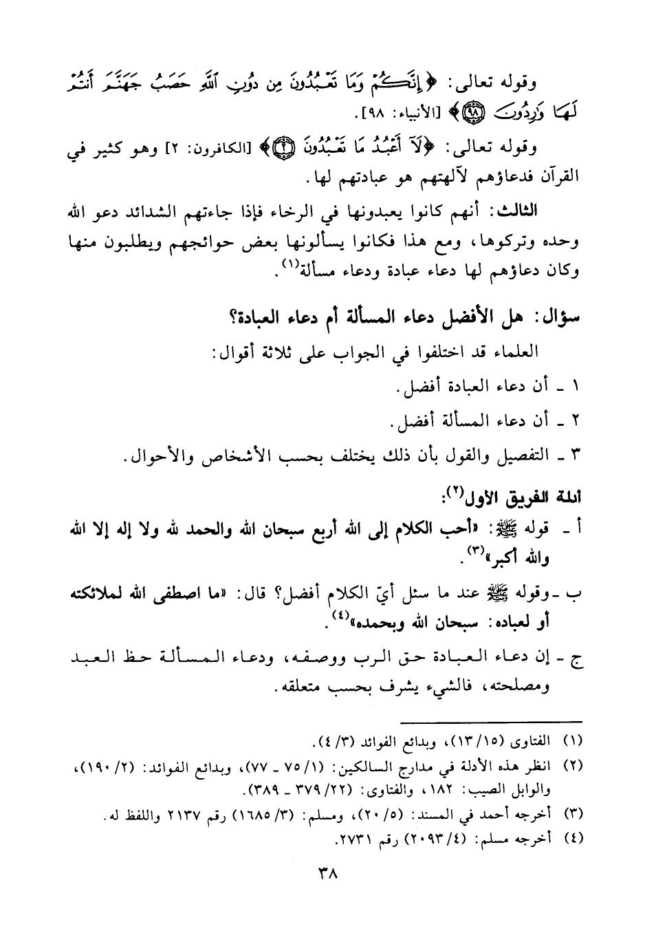 1 - أن دعاء العبادة أفضل