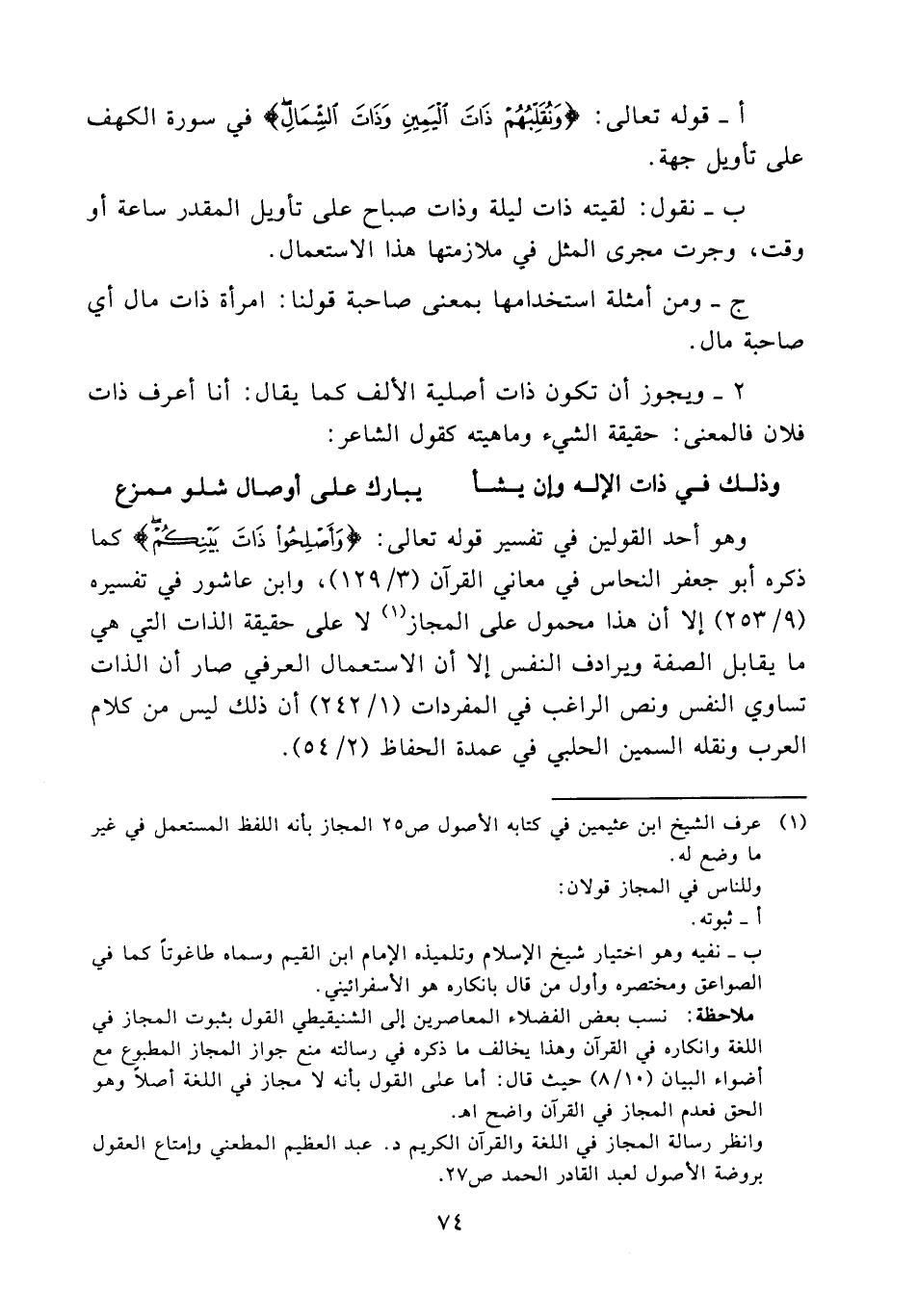 وانظر رسالة المجاز في اللغة والقرآن الكريم د. عبد العظيم المطعني وإمتاع العقول بروضة الأصول لعبد القادر الحمد ص27.