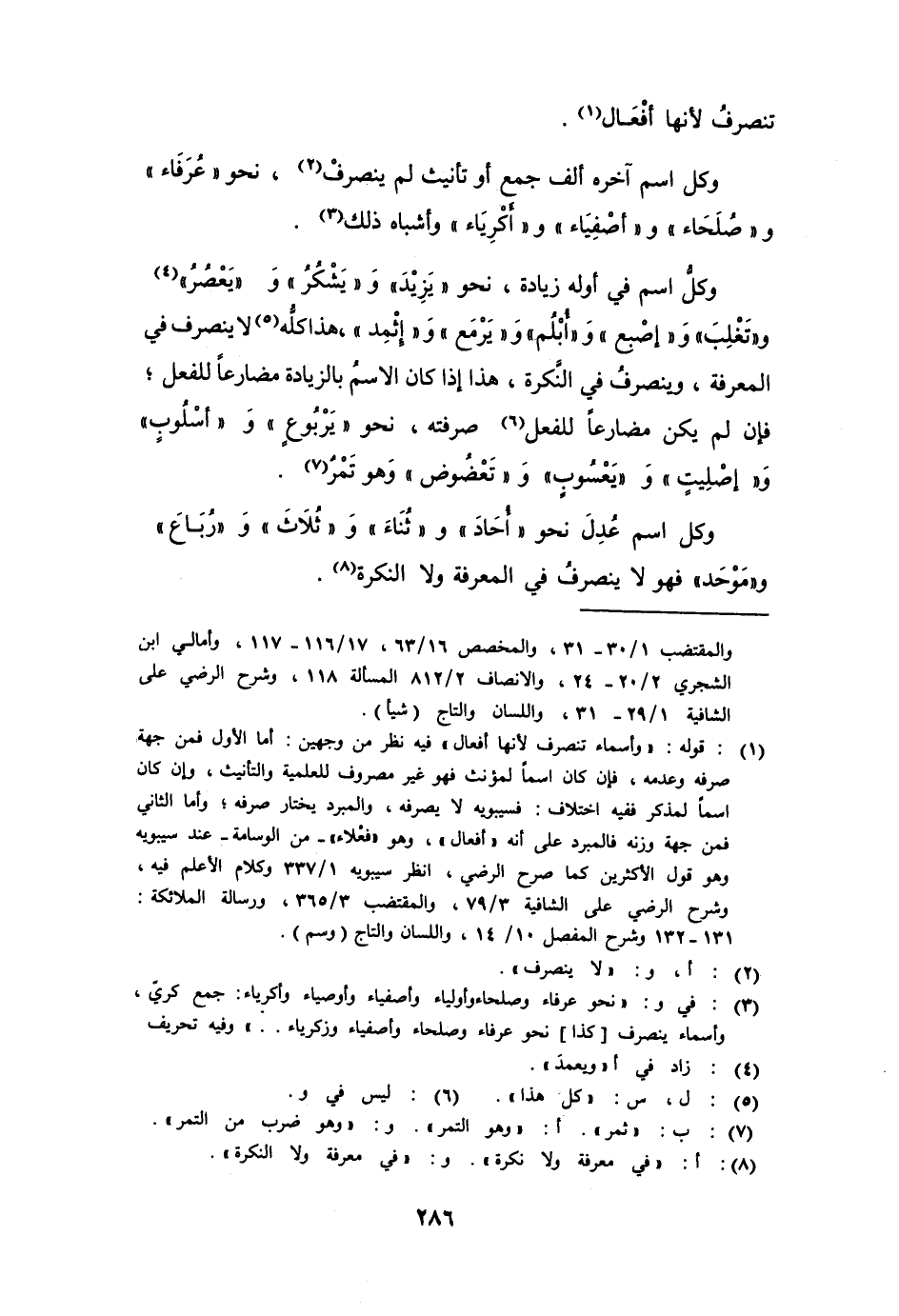 وكل اسم آخره ألف جمع أو تأنيث لم ينصرف، نحو " عُرَفَاء " و " صُلَحَاء " و " أصْفِياء " و " أَكْرِياء " وأشباه ذلك.