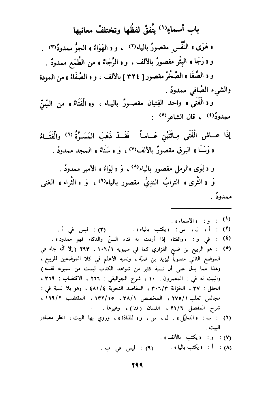 وسَنا البرق مقصور بالألف، وسَناءُ المجد ممدود.