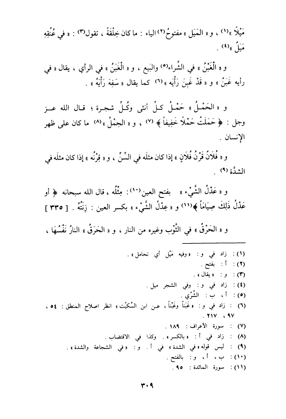 مَيْلاً "، و " المَيْل " مفتوحُ الياء - ما كان خِلْقَةً، تقول: " في عُنُقِهِ مَيَلٌ ".