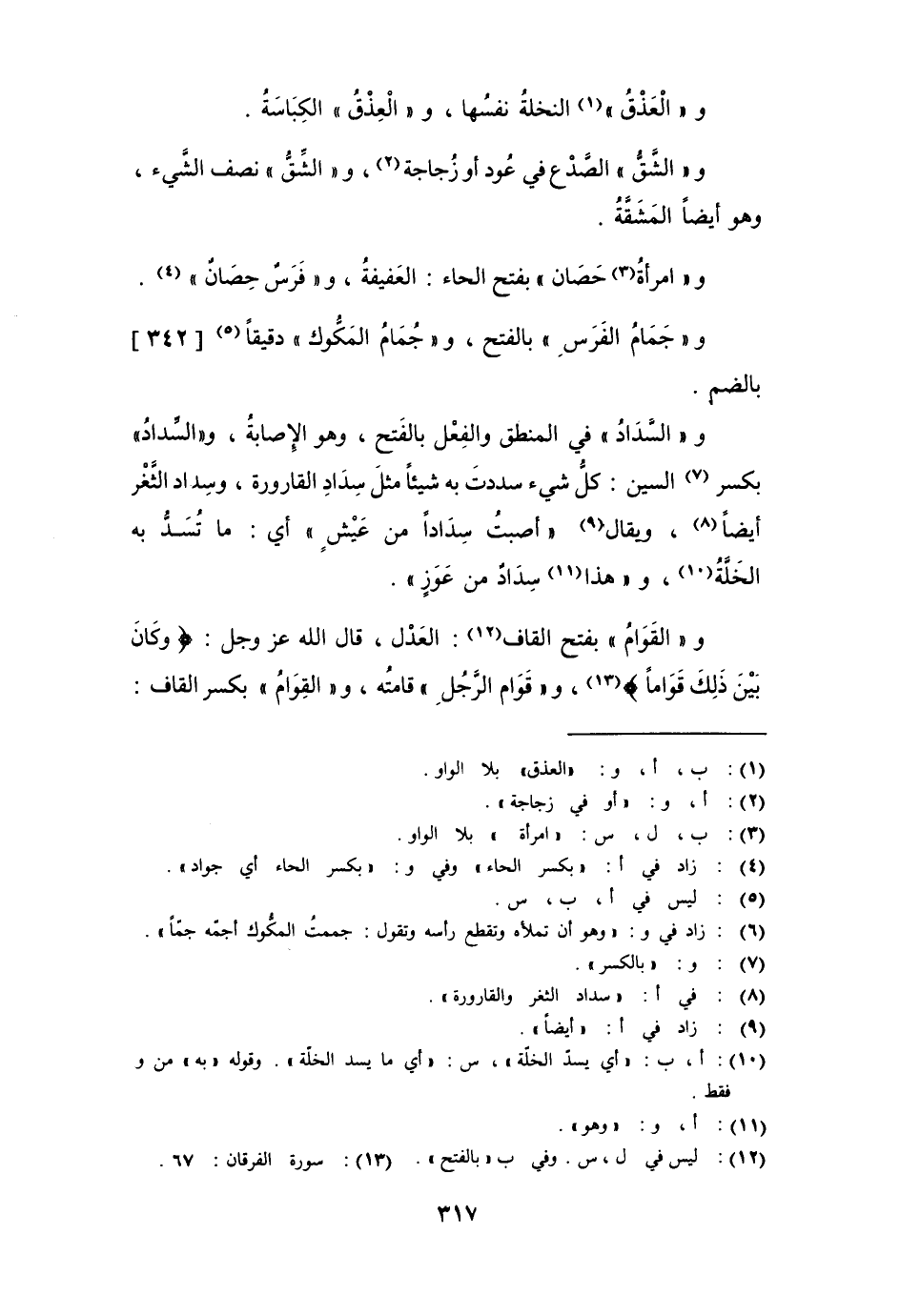 و" القَوَام " العَدْل، قال الله عزّ وجلّ:) وكانَ بَيْنَ ذلكَ قَواماً (و " قَوام الرجل " قامته، و " القِوام " - بكسر القاف -