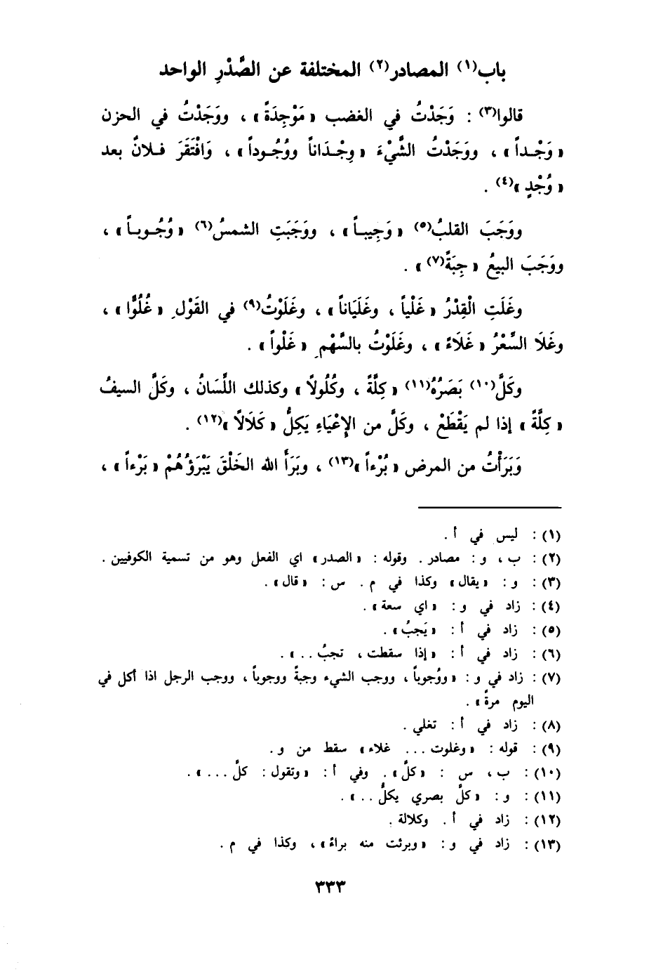 باب المصادر المختلفة عن الصدر الواحد