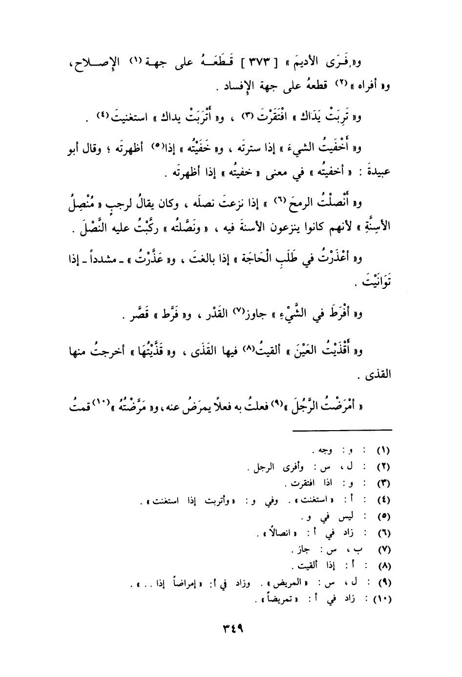 و " فَرَى الأديمَ " قَطَعَهُ على جهة الإصلاح، و " أفراه " قطعهُ على جهة الإفساد.