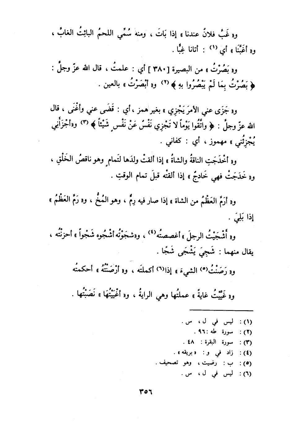 و" بَصُرْتُ " من البصيرة أي: علمتُ. قال الله عزّ وجلّ:) بَصُرْتُ بما لم يَبْصُروا بِهِ (، و " أَبْصَرْتُ " بالعين.