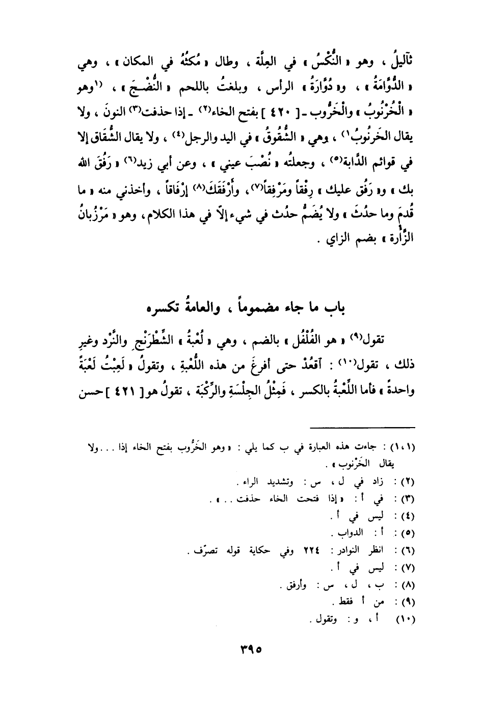 باب ما جاء مضموماً، والعامة تكسره