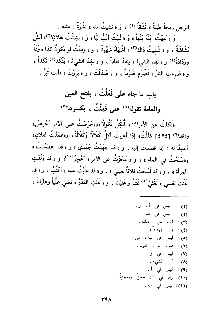 باب ما جاء على فَعَلْتُ، بفتح العين والعامة تقوله على فَعِلْتُ، بكسرها