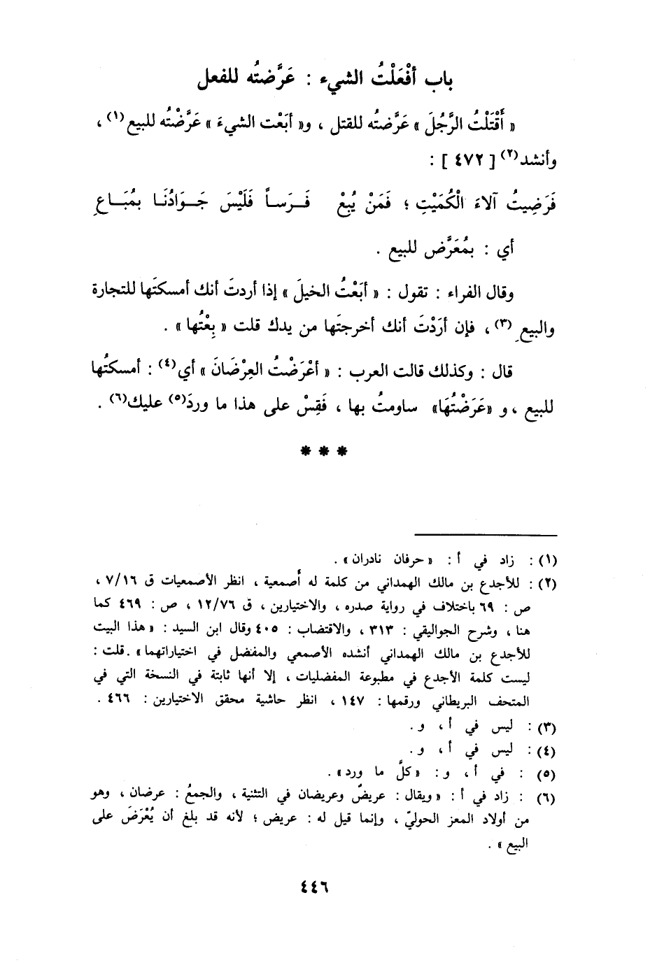 باب أَفْعَلْتُ الشيء: عَرَّضته للفعل