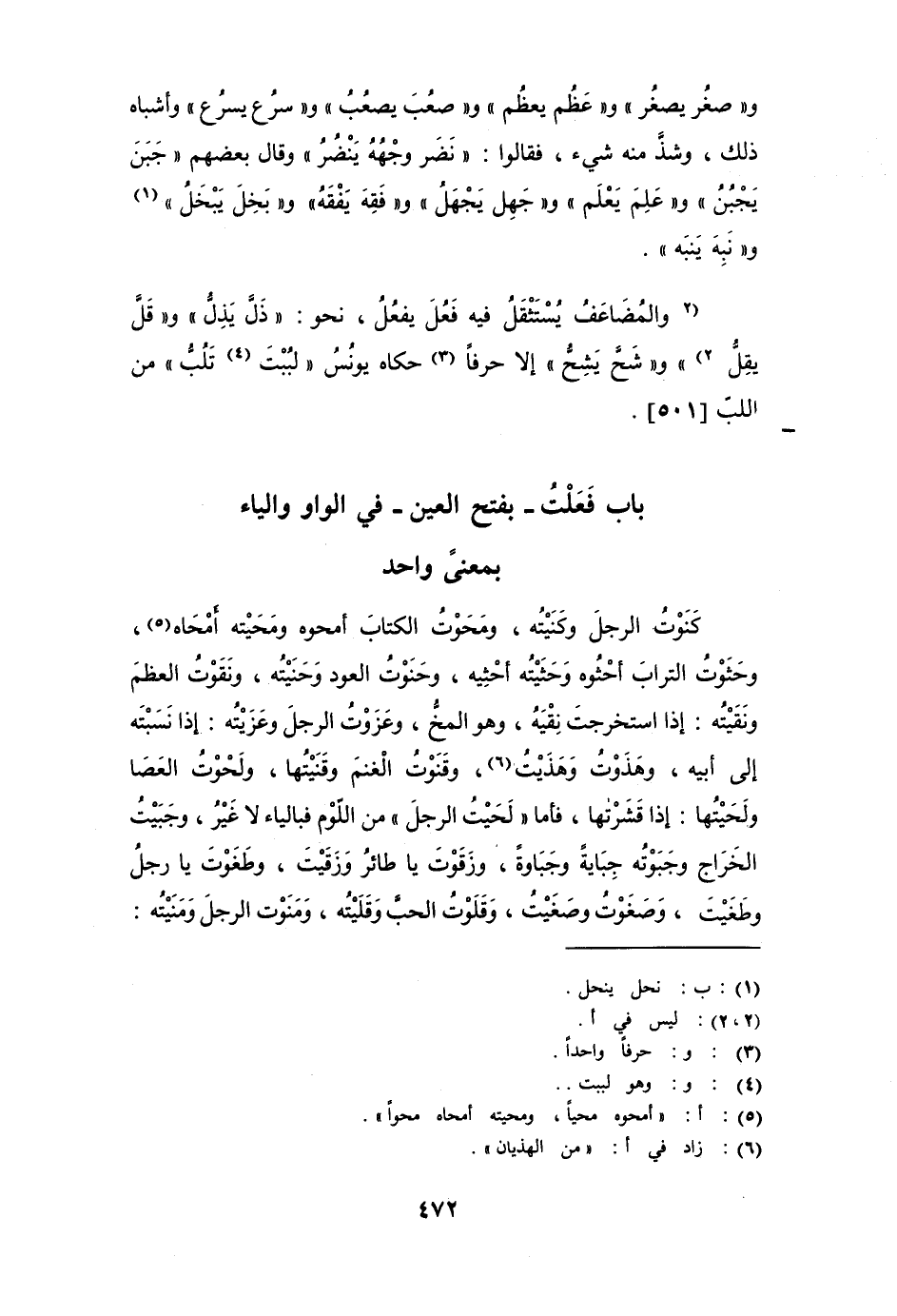 باب فَعَلْتُ - بفتح العين - في الواو والياء بمعنى واحد