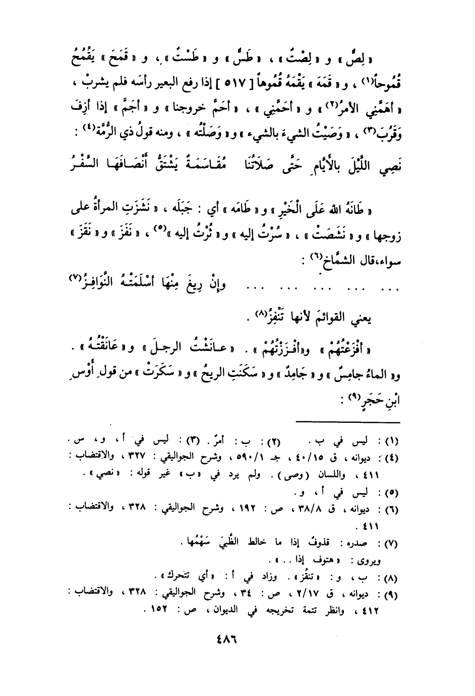 " طانَهُ الله على الخير " وطَامَه " أي: جَبَلَه، " نَشَزَت المرأة على زوجها " و " نَشَصَت "، " سُرْتُ إليه " و " ثُرْتُ إليه "، " نَفَزَ " و " نَقَزَ " سواء قال الشماخ: