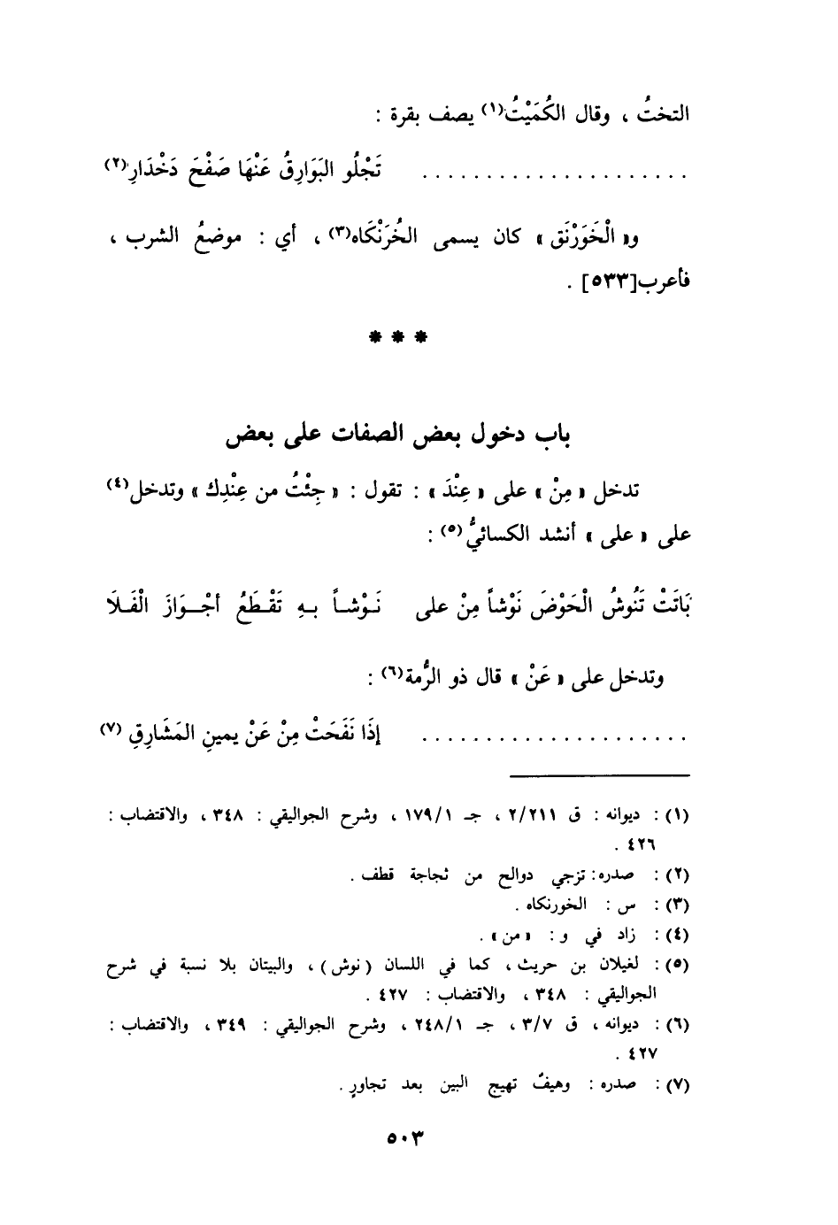 و" الخَوَرْنَق " كان يسمى الخُورَنْكاه، أي: موضع الشرب، فأعرب.