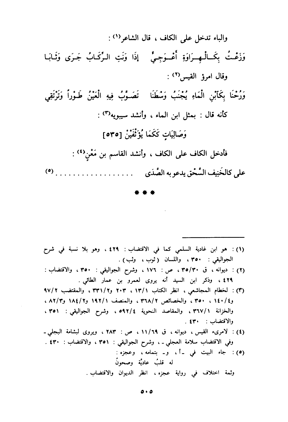 فأدخل الكاف على الكاف، وأنشد القاسم بن معنٍ