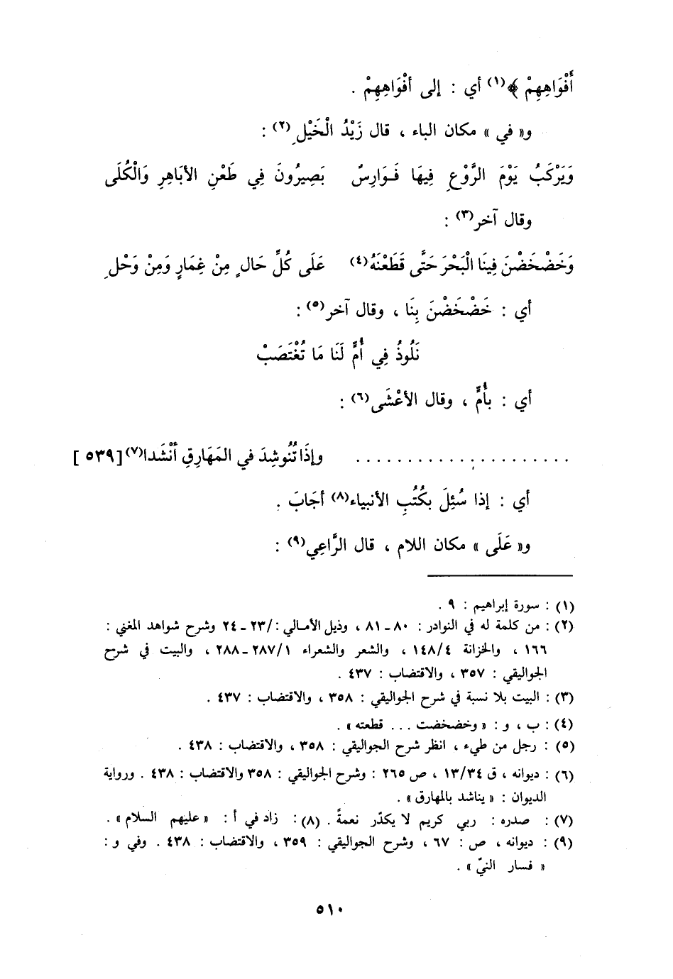 و" في " مكان " الباء "، قال زيد الخيل: