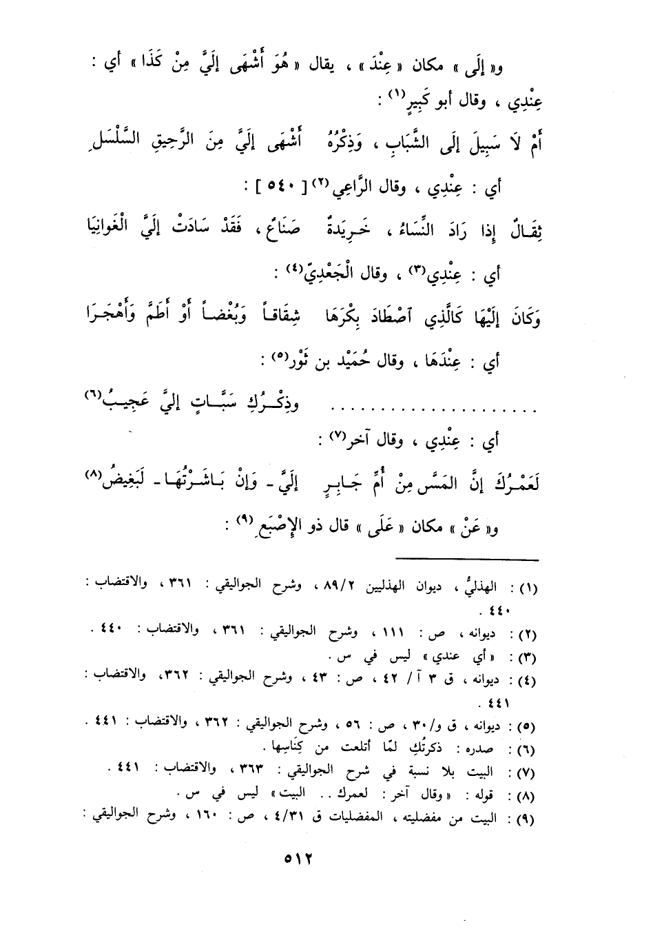 و " إلى " مكان " عِنْدَ "، يقال " هو أَشْهَى إليَّ من كذا " أي: عندي، وقال أبو ك " بير: