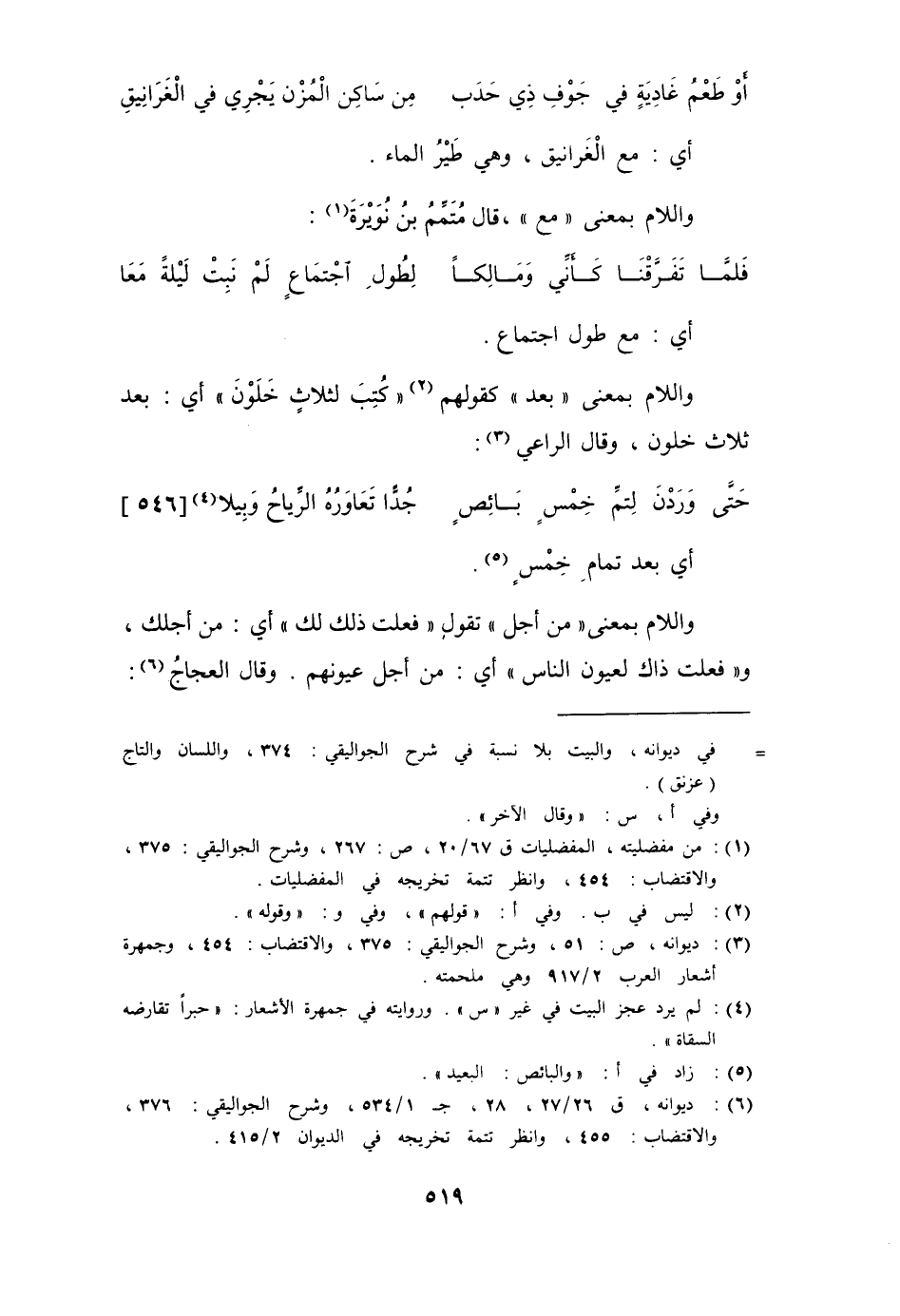 و" اللام " بمعنى " مع " قال متمم بن نويرة: