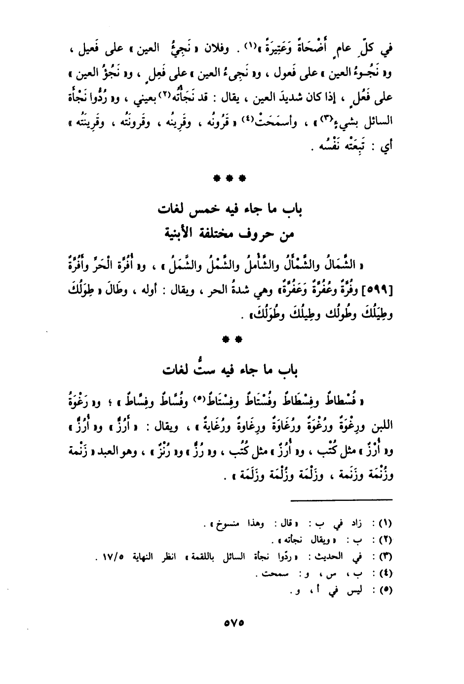 باب ما جاء فيه خمس لغات من حروف مختلفة الأبنية