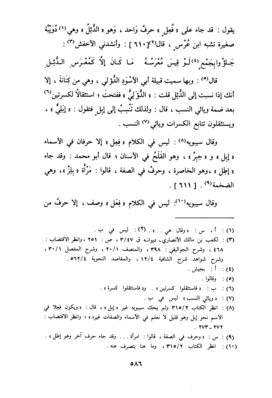 قال: وبها سميت قبيلة أبي الأسود الدُّؤلي، وهي من كِنَانة، إلا أنك إذا نسبت إلى الدُّئِل قلت: " الدُّؤلِيّ " ففتحت؛ استثقالاً لكسرتين بعد ضمة وياءي النسب، قال: ولذلك تنسب إلى إبلٍ فتقول: " إبَلِيّ "، ويستثقلون تتابع الكسرات وياءي النسب.