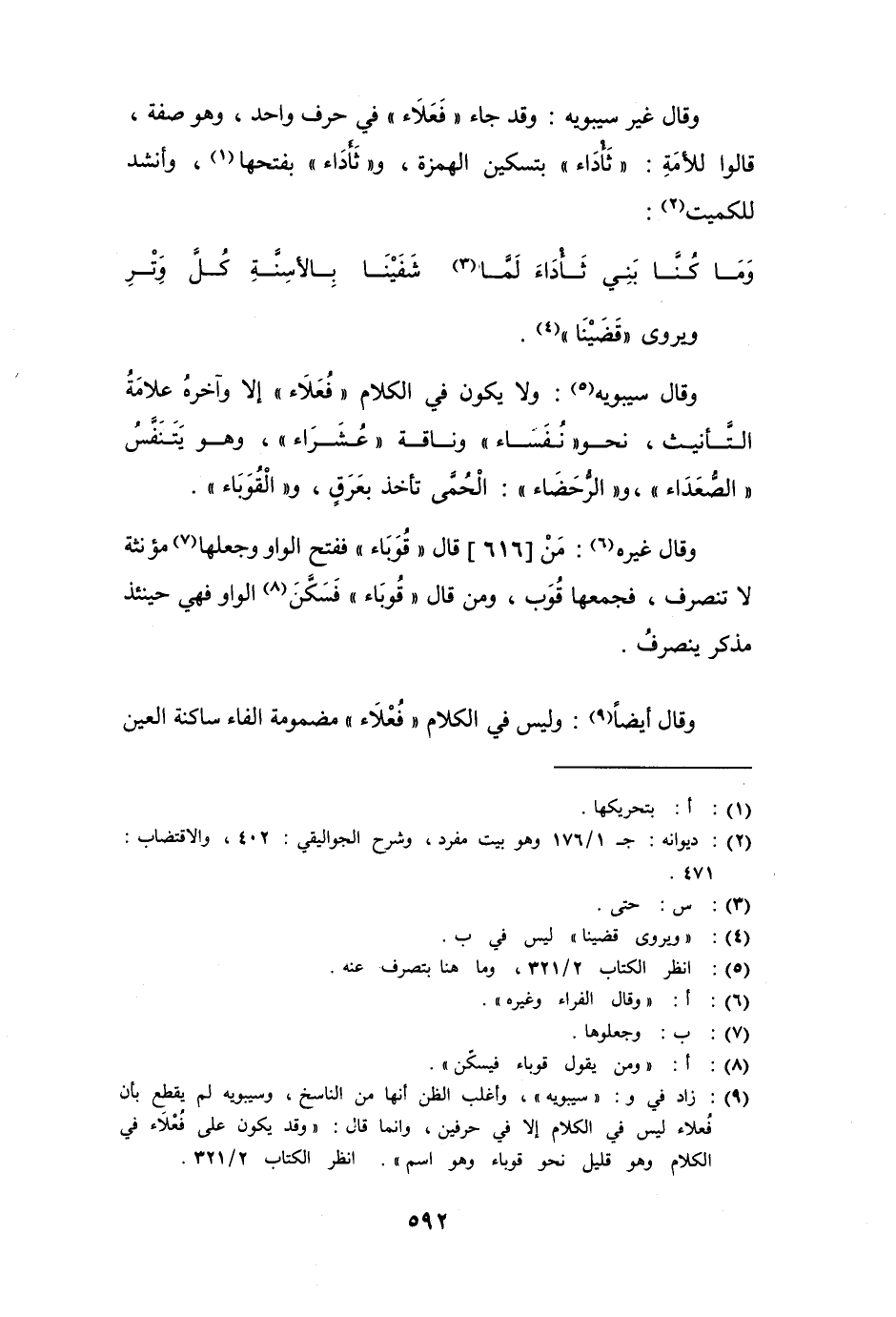وقال أيضاً: وليس في الكلام " فُعْلاء " مضمومة الفاء ساكنة العين