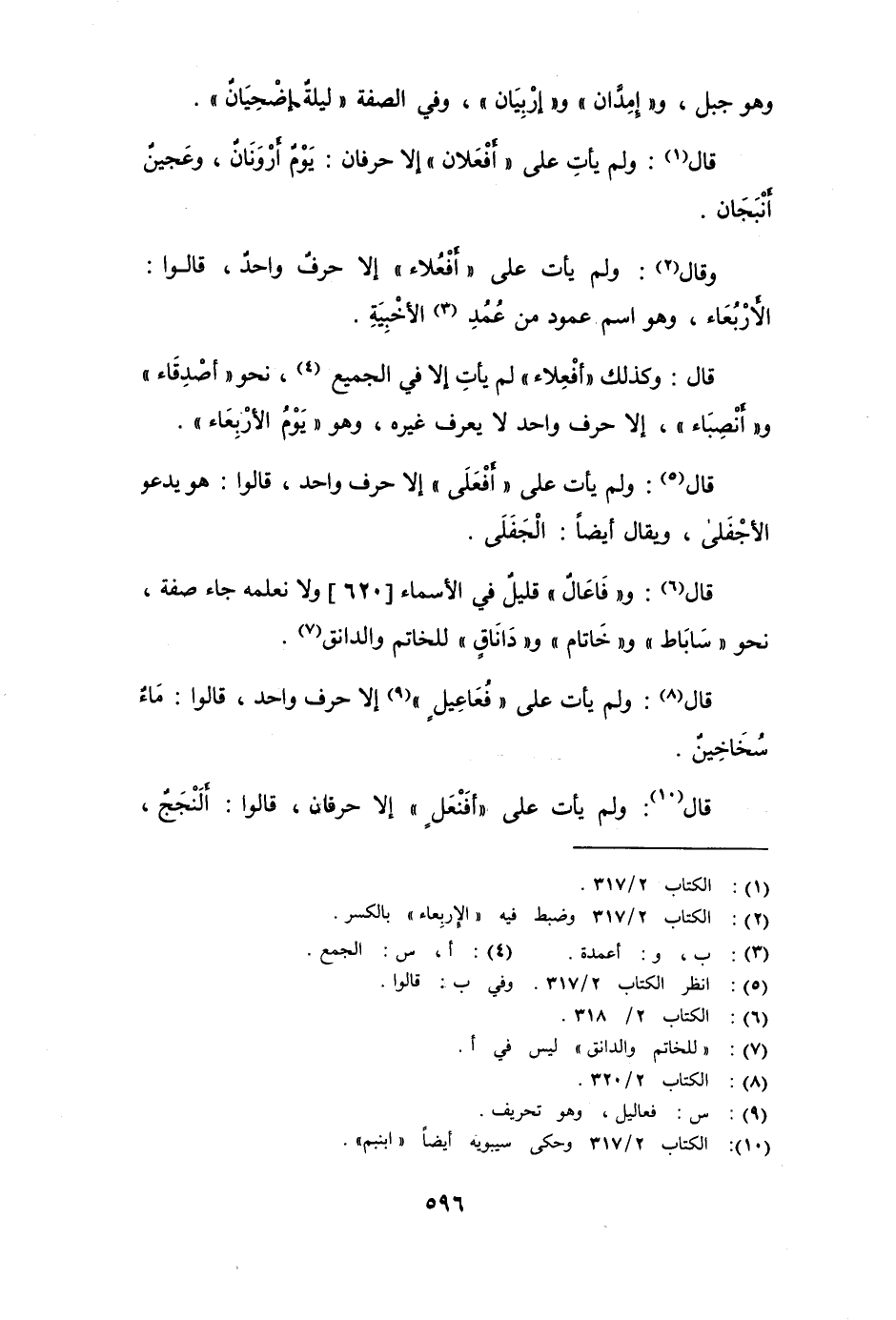 قال: وكذلك أَفْعِلاء لم يأت إلا في الجمع، نحو " أَصْدِقَاء " و " أَنْصِبَاء "، إلا حرف واحد لا يعرف غيره، وهو " يَوْمُ الأرْبِعَاء ".