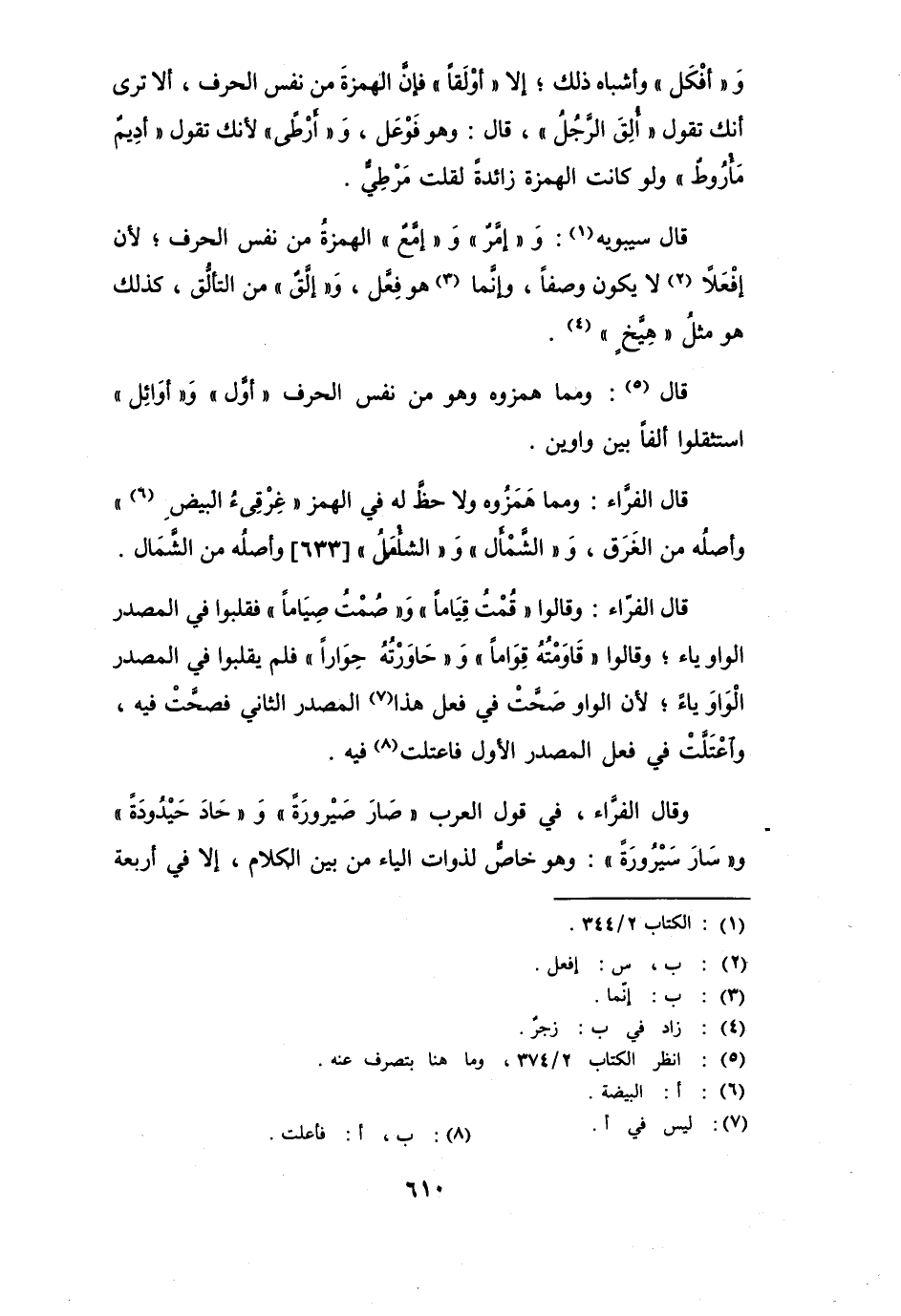 قال: ومما همزوه وهو من نفس الحرف " أوَّل " و " أَوائِل " استثقلوا ألفاً بين واوين.