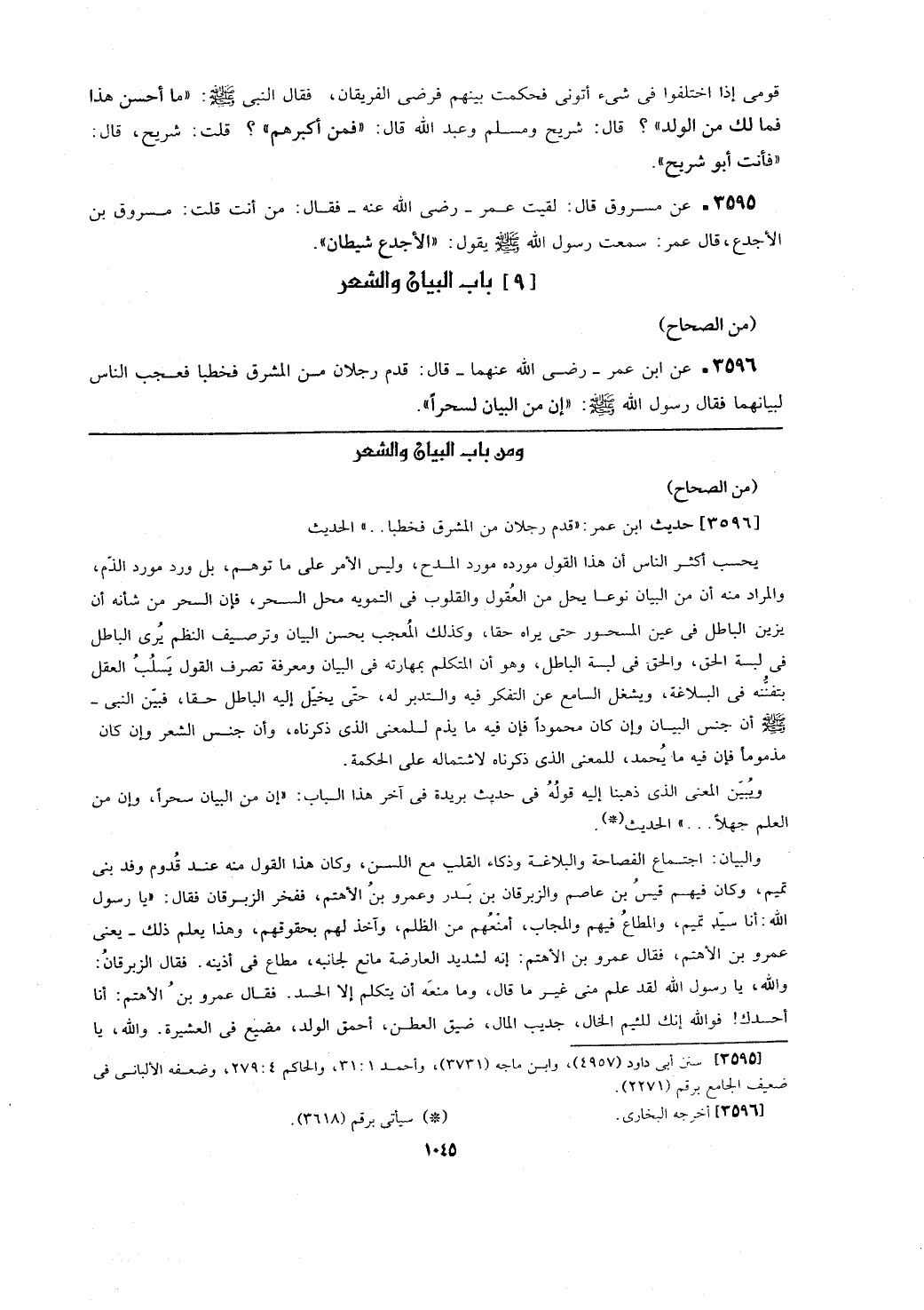 [3596] حديث ابن عمر: (قدم رجلان من الشرق فخطبا ...) الحديث