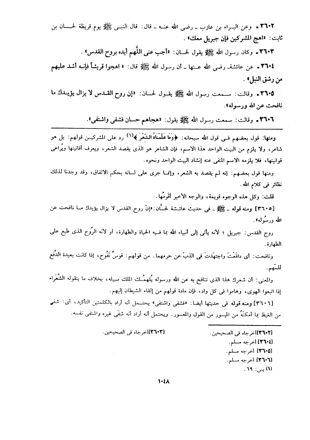 [3605] ومنه قوله - صلى الله عليه وسلم - في حديث عائشة لحسان: (إن روح القدس لا يزال يؤيدك ما نافحت عن الله ورسوله).
