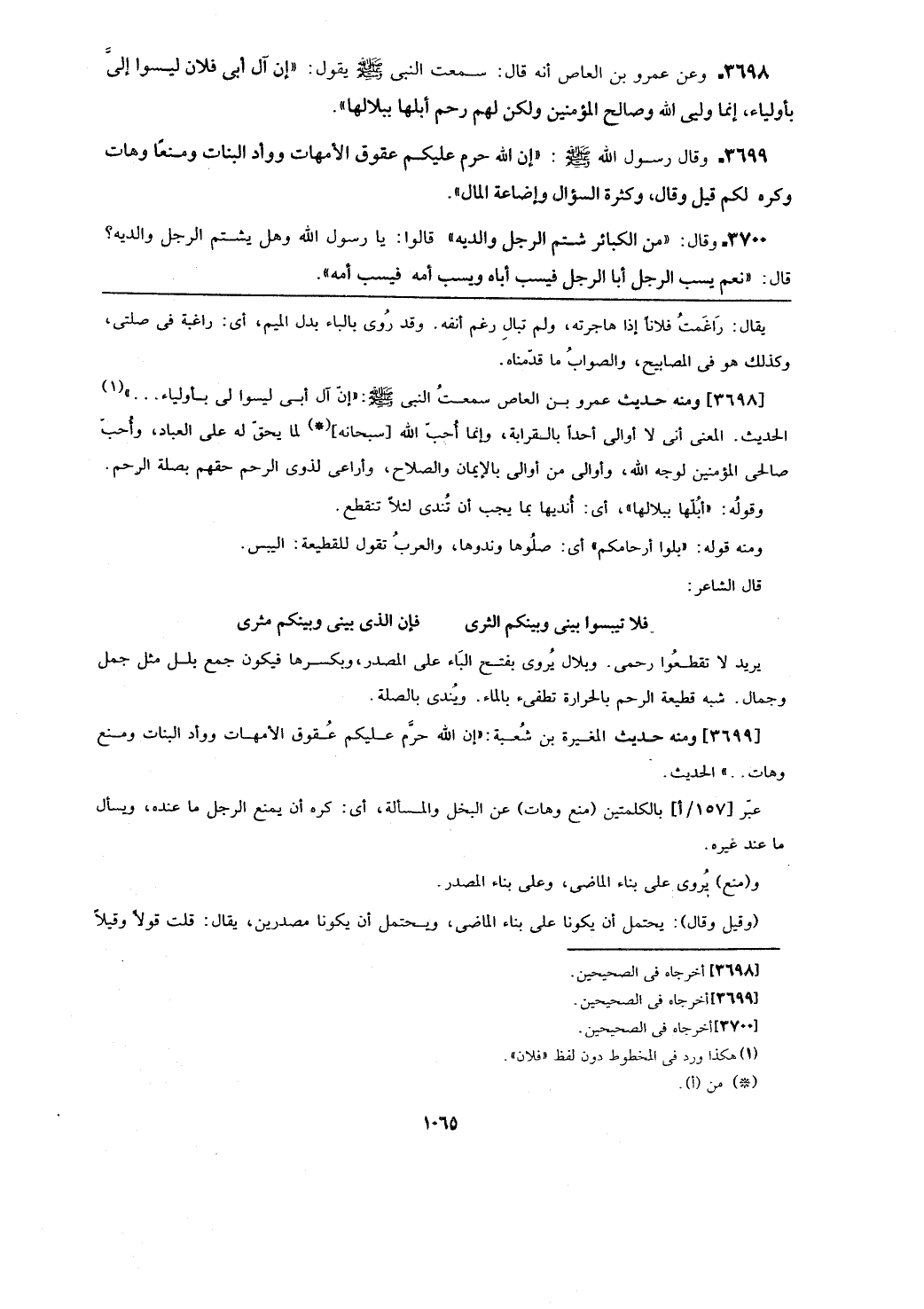 ] 3699 [ومنه حديث المغيرة بن شعبة (إن الله حرم عليكم عقوق الأمهات ووأد البنات ومنع وهات ...) الحديث.