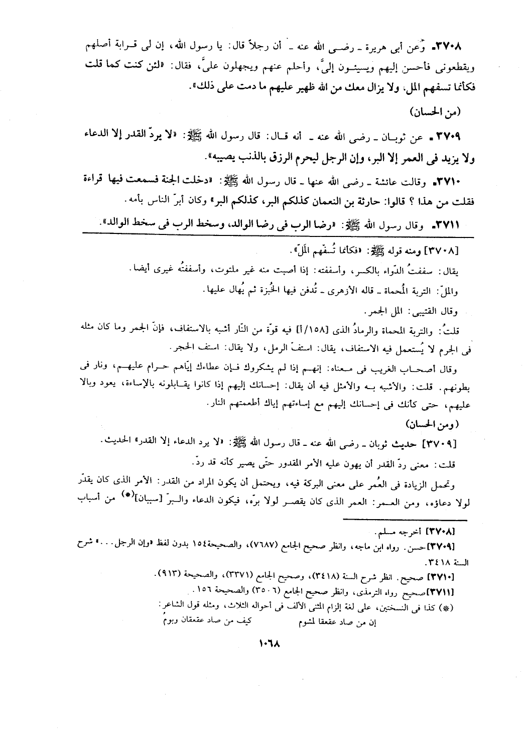 ] 3709 [حديث ثوبان -رضي الله عنه- قال رسول الله - صلى الله عليه وسلم -: (لا يرد الدعاء إلا القدر) الحديث.