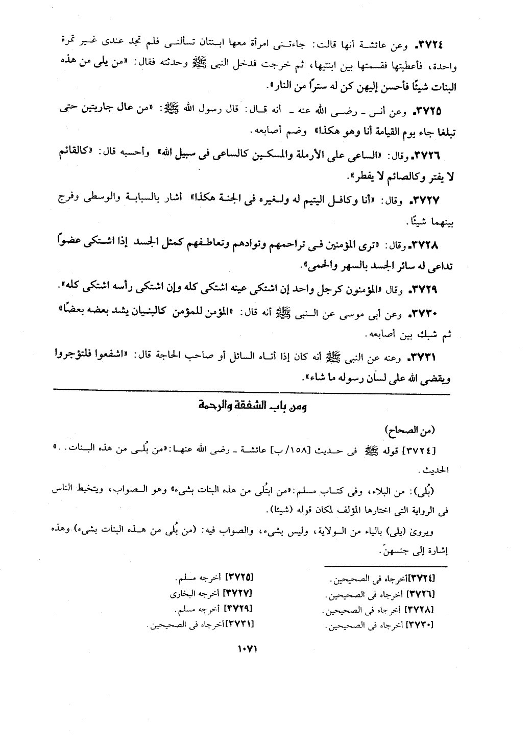 [3724] قوله - صلى الله عليه وسلم - في حديث [158/ب] عائشة- رضي الله عنها: (من بلي من هذه البنات ...) الحديث.