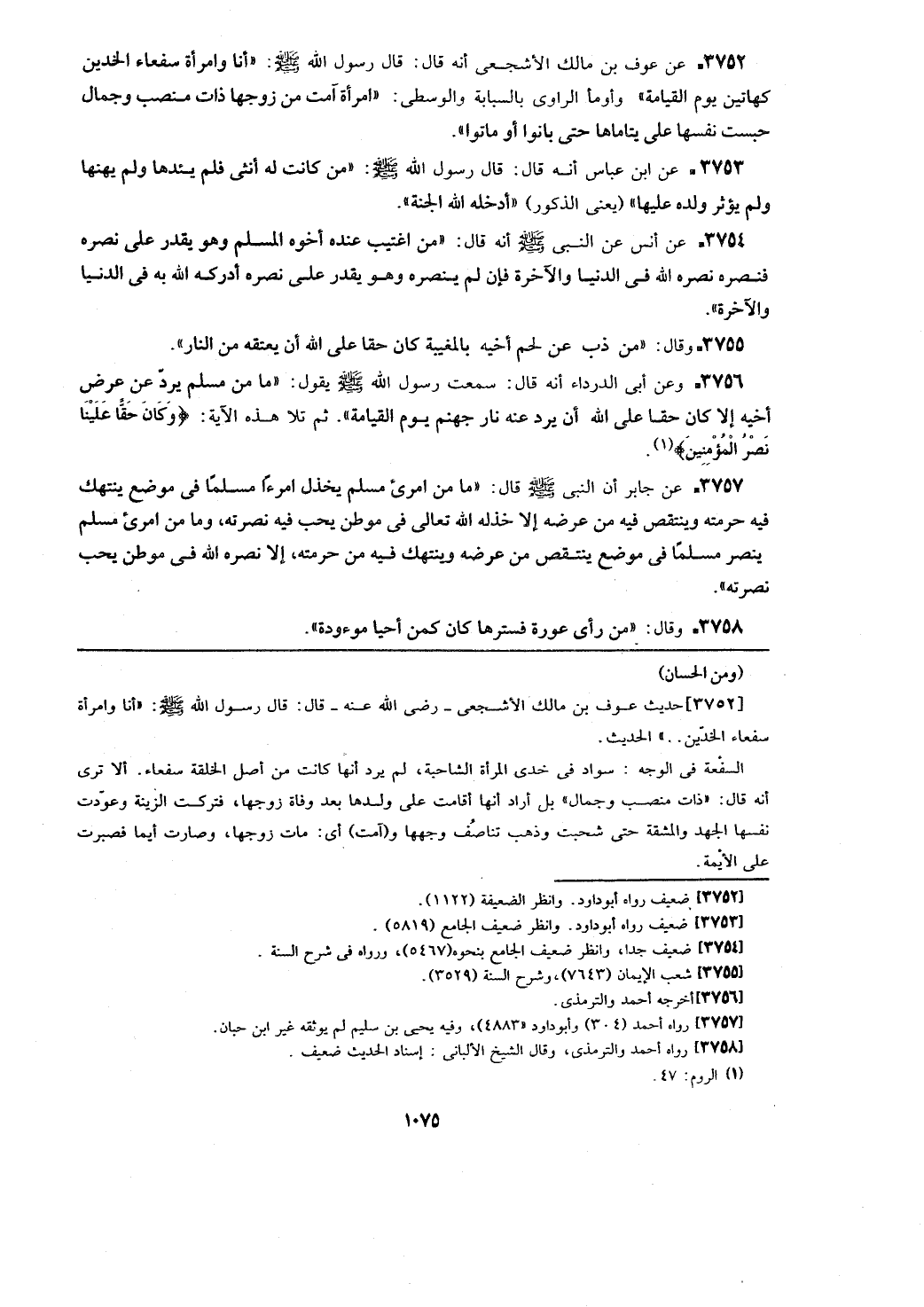 [3752] حديث عوف بن مالك الأشجعي- رضي الله عنه- قال: قال رسول الله - صلى الله عليه وسلم -: (أنا وإمرأة سفعاء الخدين ...) الحديث.