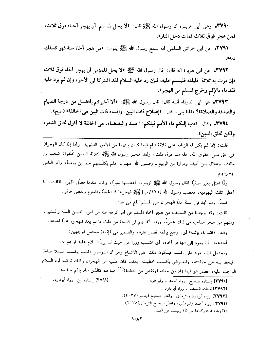 قلت: إنما لم يكن له الزيادة على ثلاثة أيام فيما كان بينهما من الأمور الدنيوية. وأما إذا كان الهجران في حق من حقوق الله، فله ما فوق ذلك، ولقد هجر رسول الله - صلى الله عليه وسلم - الثلاثة الذين خلفوا: كعب بن مالك، وهلال بن أمية، ومرارة بن الربيع- رضي الله عنهم- فلم يكلمهم خمسين يوماً، وأمر الناس بهجرانهم.
