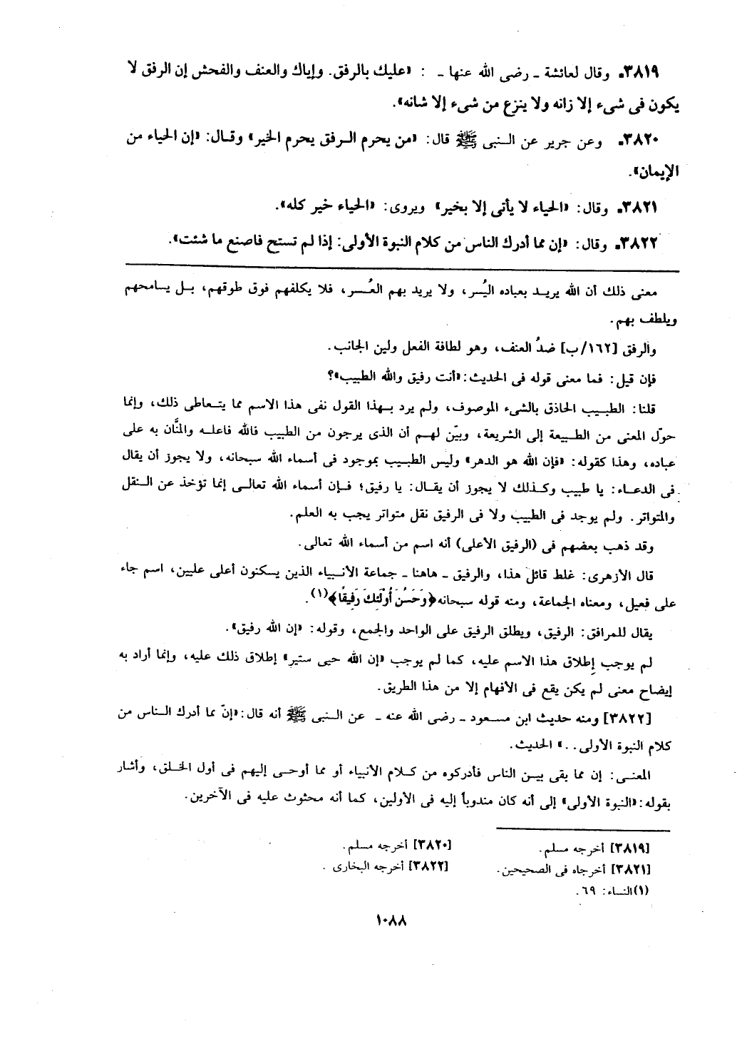 والرفق [162/ب] ضد العنف، وهو لطافة الفعل ولين الجانب.