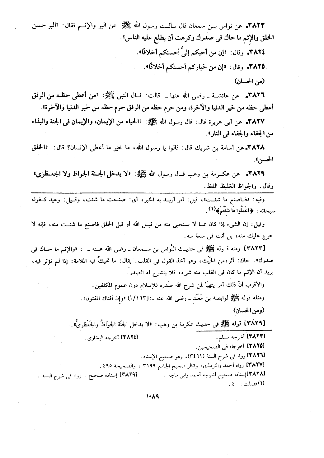 [3823] ومنه قوله - صلى الله عليه وسلم - في حديث النواس بن سمعان- رضي الله عنه-: (والإثم ما حاك في صدرك). حاك: أثر، من الحيك، وهو أخذ القول في القلب. يقال: ما تحيك فيه الملامة: إذا لم تؤثر فيه، يريد أن الإثم ما كان في القلب منه شيء، فلا ينشرح له الصدر.