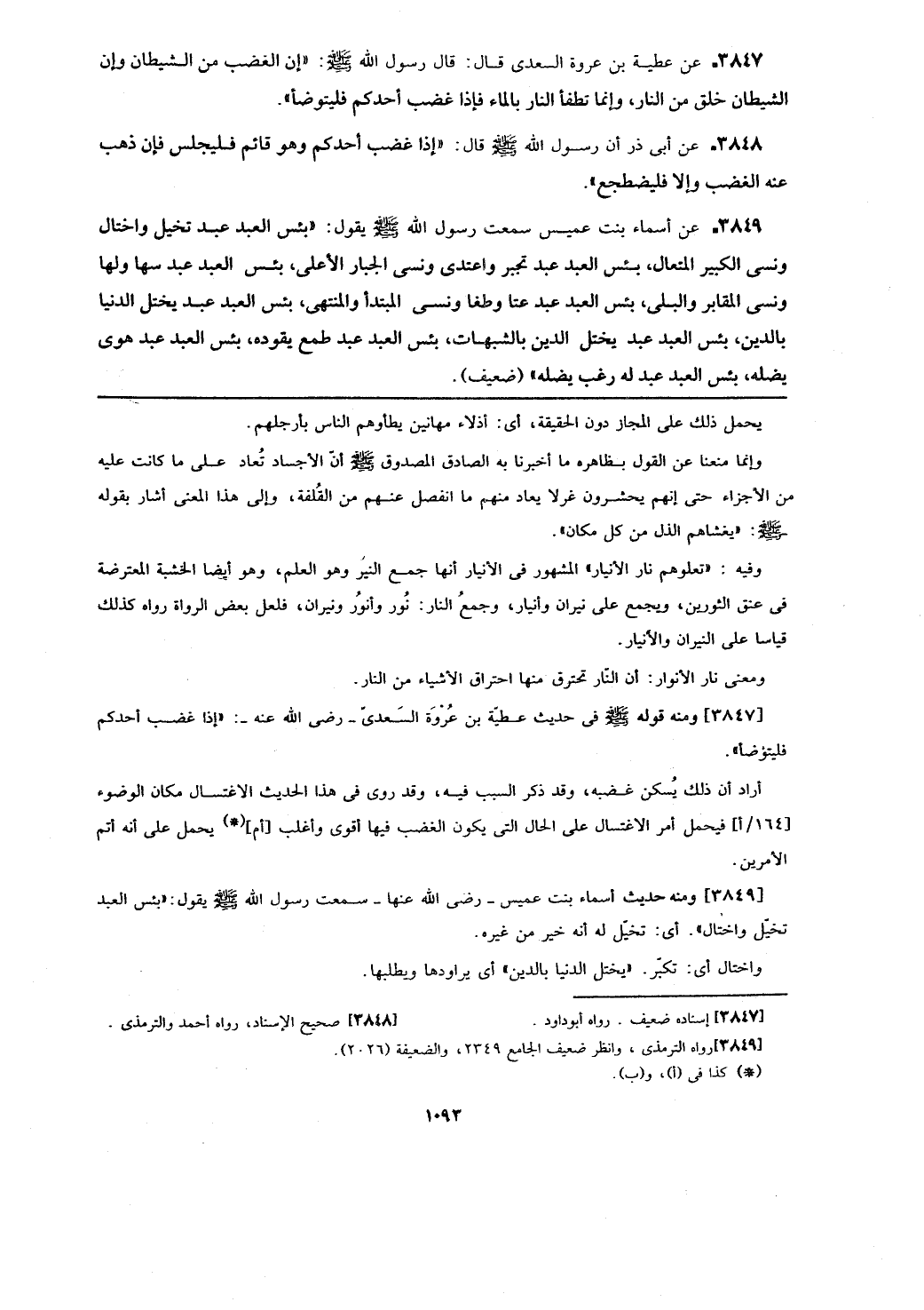 [3847] ومنه قوله - صلى الله عليه وسلم - في حديث عطية بن عروة السعدي- رضي الله عنه-: (إذا غضب أحدكم فليتوضأ).