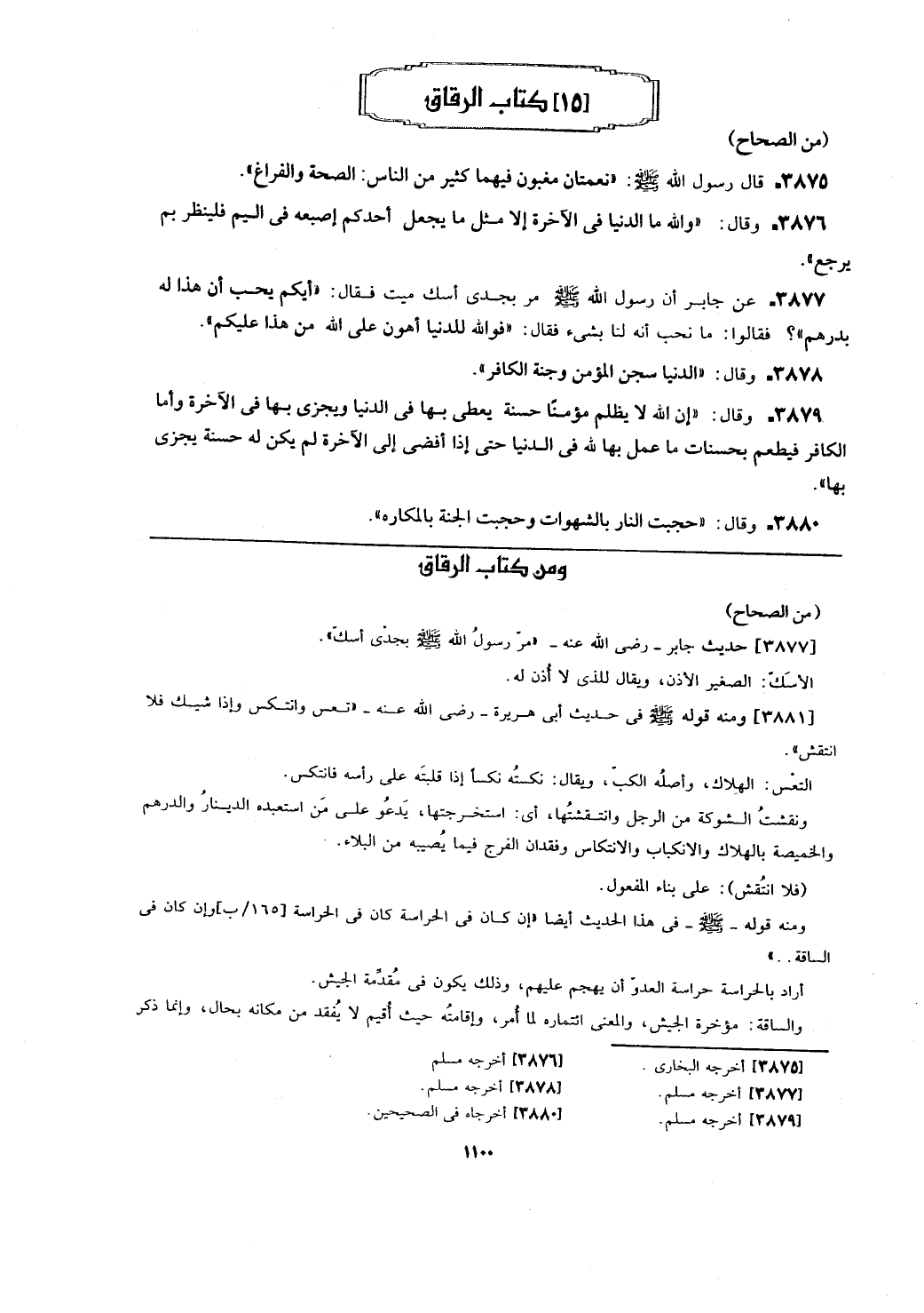 [3881] ومنه قوله - صلى الله عليه وسلم - في حديث أبي هريرة- رضي الله عنه- (تعس انتكس وإذا شيك فلا انتقش).