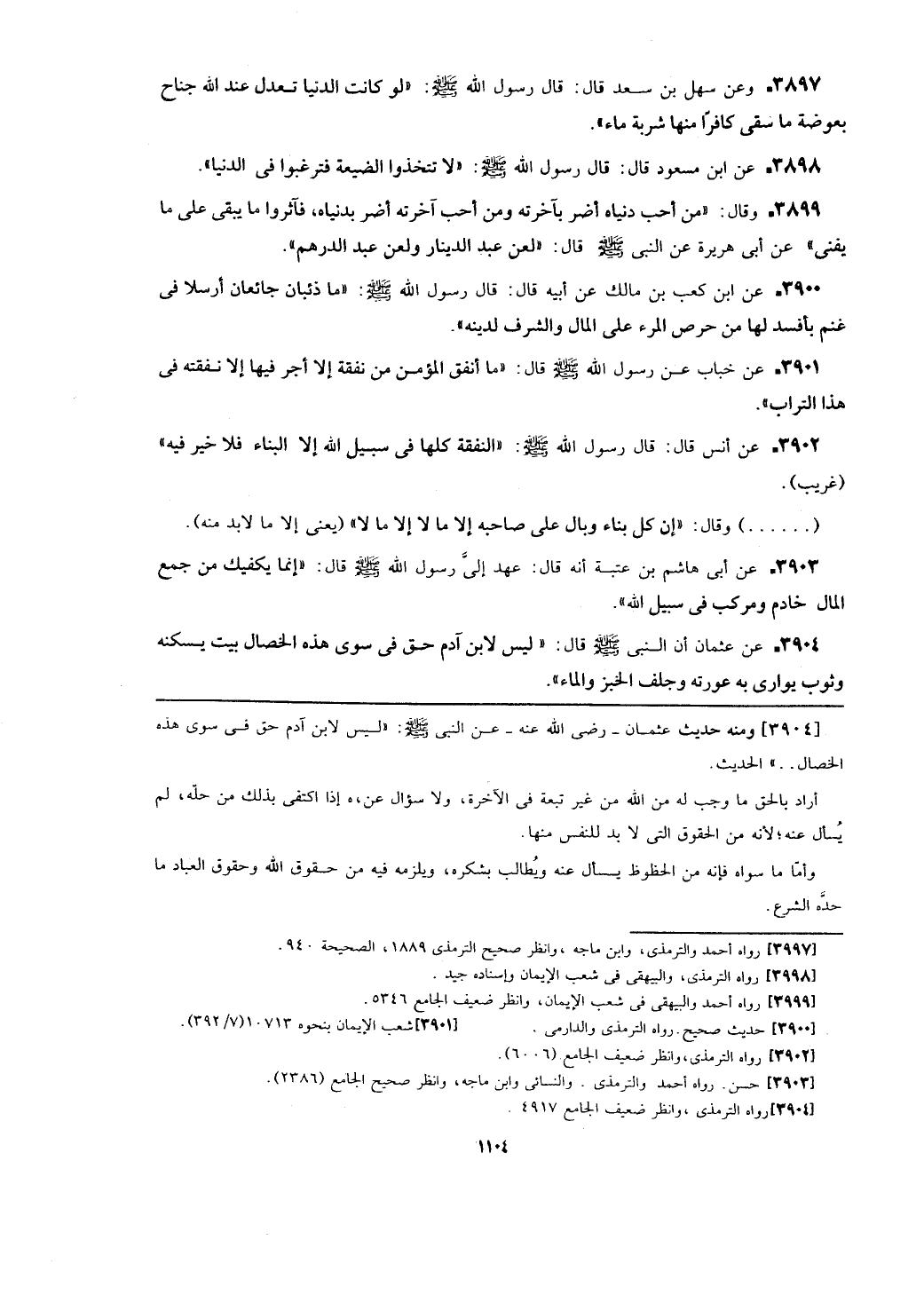 [3904] ومنه حديث عثمان- رضي الله عنه- عن النبي - صلى الله عليه وسلم -: (ليس لابن آدم حق في سوى هذه الخصال ..) الحديث.