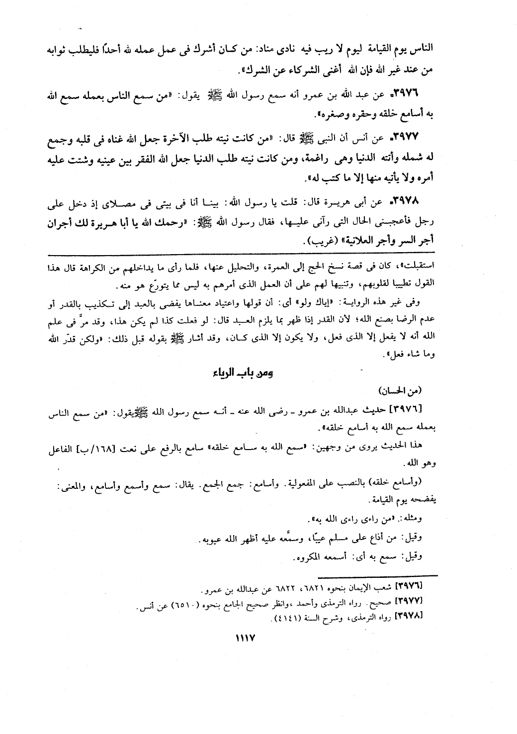 [3976] حديث عبد الله بن عمرو- رضي الله عنه- أنه سمع رسول الله - صلى الله عليه وسلم - يقول: (من سمع الناس بعمله سمع الله به أسامع خلقه).